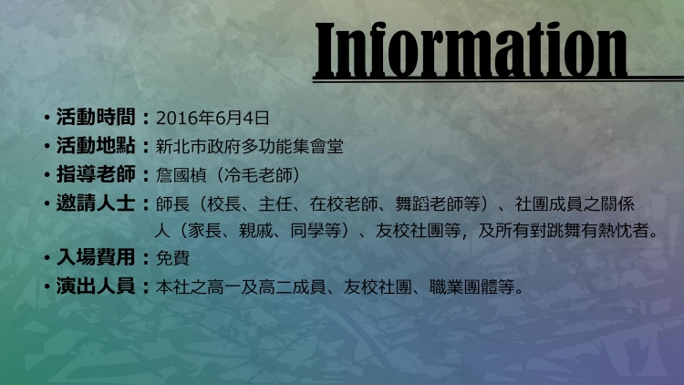 如有贊助廠商欲前來本社團之成果發表會,皆可在統計人數後向總召索取公關票。活動當天出示公關票可提前入場。