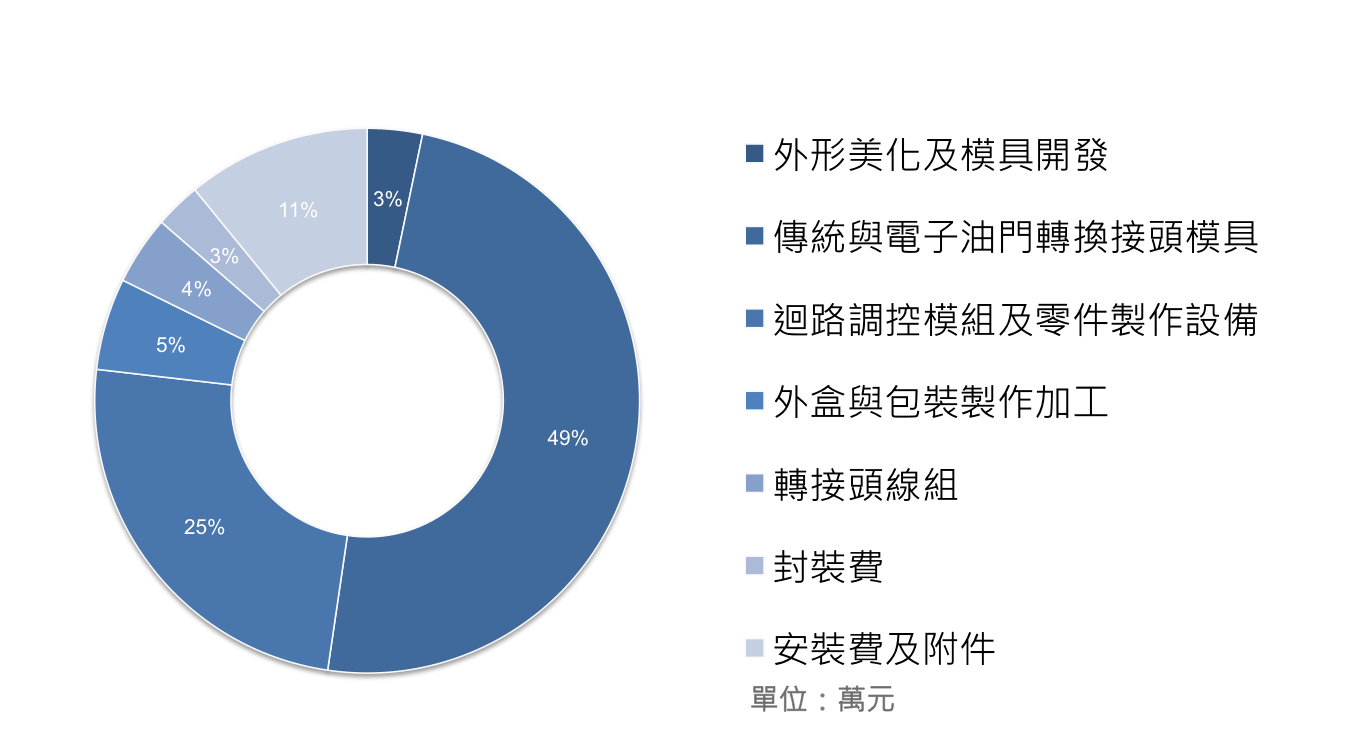 我們目前已經完成樣品試做,但仍需要更多資金來進行模具開發,用來完成能夠安裝在原廠車上的接頭線組、調控迴路模組等。模具開發一向是新產品推出時最高昂的成本,我們想要藉由募資計劃的推廣,使本專案能夠順利達成。