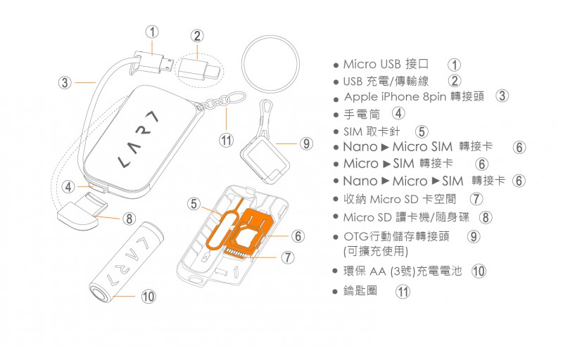 隨著智慧型手機和平板電腦的崛起,幾乎每個人都是人手一機、甚至人手多機。我們經常需要救急行動電源、充電線、傳輸線、SIM 轉接卡、SIM 卡針、隨身碟、讀卡機、OTG 等小工具,然而這些小工具卻因收納困難、容易丟失等種種理由而不方便攜帶。