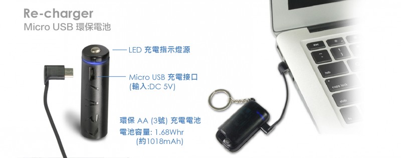 A: 產品本身就有送一個環保充電電池,充電方式和手機一樣可重覆充電。另一般碳鋅電池或鎳氫充電電池也可使用,基於電量和電壓設計有所不同,我們會較建議使用鹼性電池較為穩定。