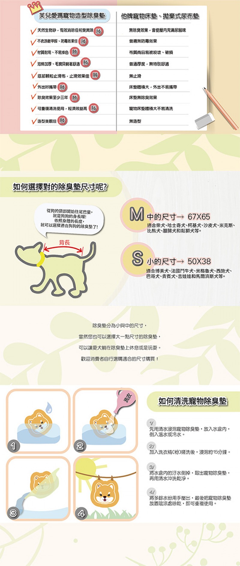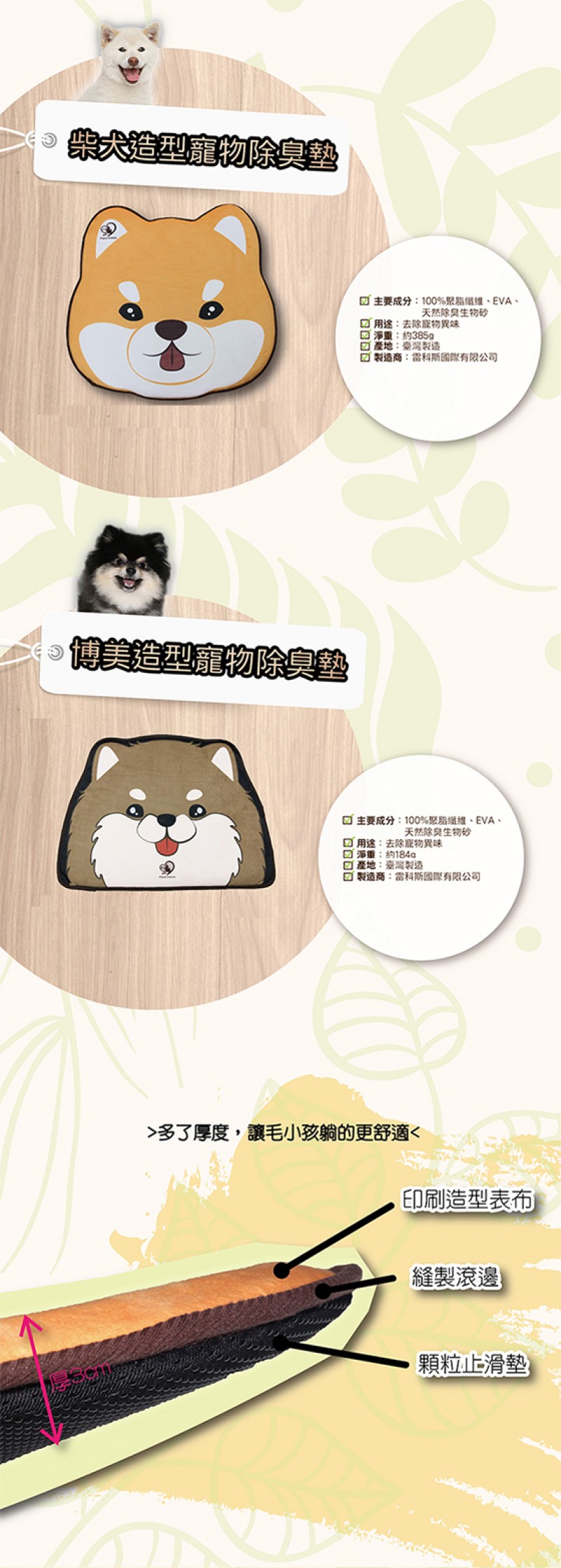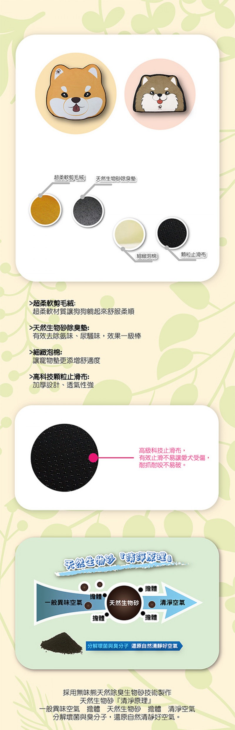 “寵物造型的除臭墊”結合空氣濾清的除臭科技,解決毛小孩爸媽們對寵物體味的苦惱,揮別臭味。