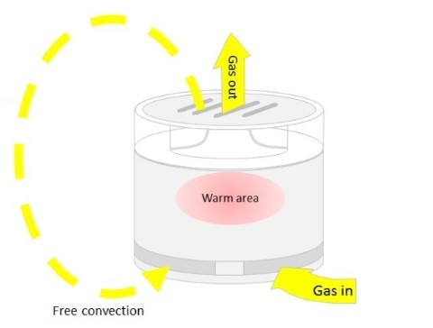 irbo的呼吸燈並不是只有裝飾而已. 它是輔助irbo內部能夠產生足夠熱能的重要媒介. 配合上氣體頭內部自帶的加熱器, 這使得irbo內部可以產生高達20攝氏度的溫差, 使得irbo得以產生足夠的自然對流.