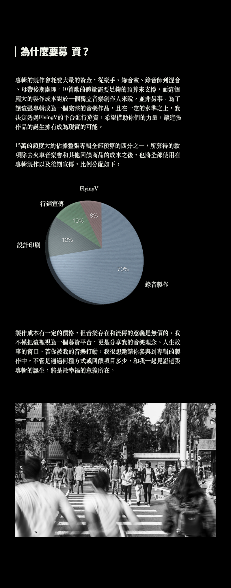 企業贊助方案:創作專輯(簽名版)30張+「寫字練習XieZiLianXi」聯名手寫歌詞明信片30套+列名共同出品人(公司logo將印製在專輯封底)