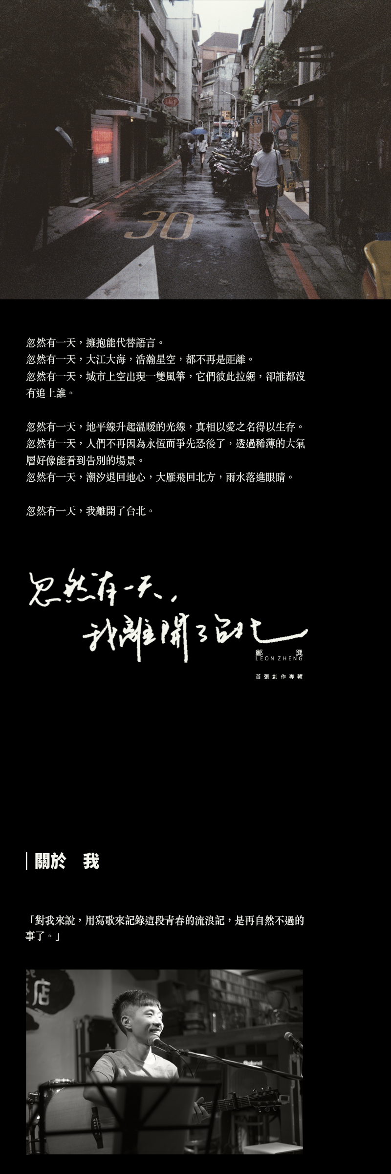 創作專輯《忽然有一天,我離開了台北》(簽名版)1張+量身訂製單曲(聆聽你的故事,為你打造一首專屬於你的歌,詳情請待募資成功後聯絡)