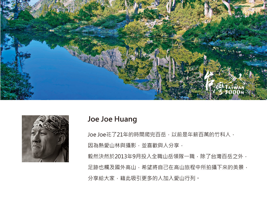 台灣三千攝影集為 Joe Joe 黃政豪百岳攝影的個人品牌出版書。