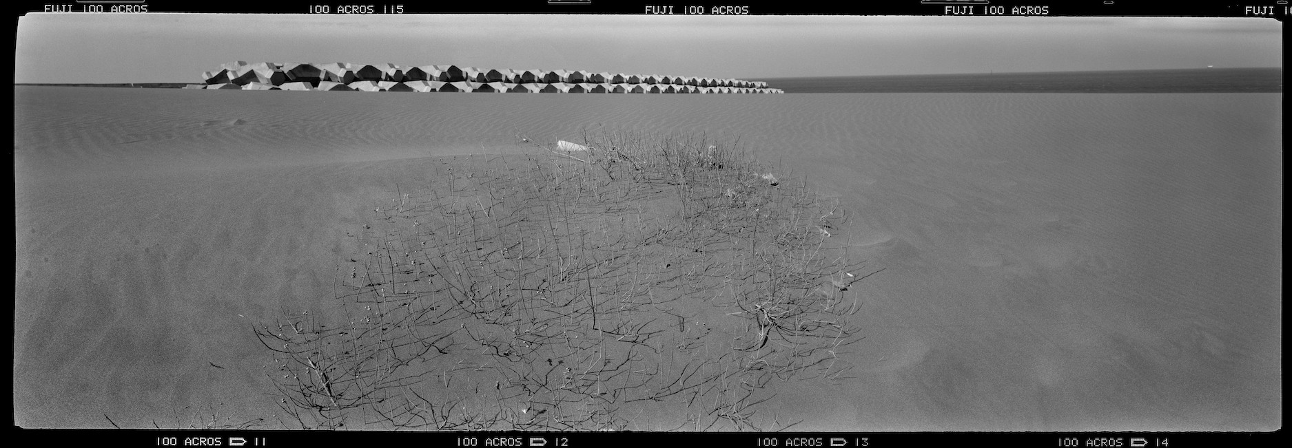 2012 年底,在決定暫停「機車台北」的拍攝之際,偶然去了一趟東北角,那時我感到那條海岸線非常陌生,跟我的童年距離好遠,於是拍下了滿滿的消波塊,也是海岸線這個系列的開始。當時,許多社會運動也跟海岸線有密切的關係:延續了二十多年的反核四、台東杉原海岸的美麗灣度假村的開發,以及引起許多藝文人士抗議的彰化國光石化案件…。這都讓我開始嘗試理解,我們自稱「島國子民」,但對於這個小島短短一千一百多公里的海岸線到底了解多少?