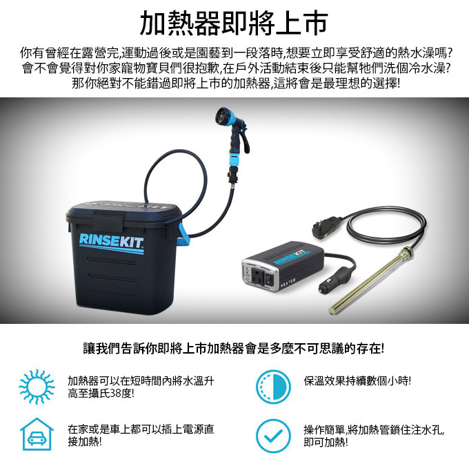 有了加熱器,可以隨時隨地享受熱水的舒適!