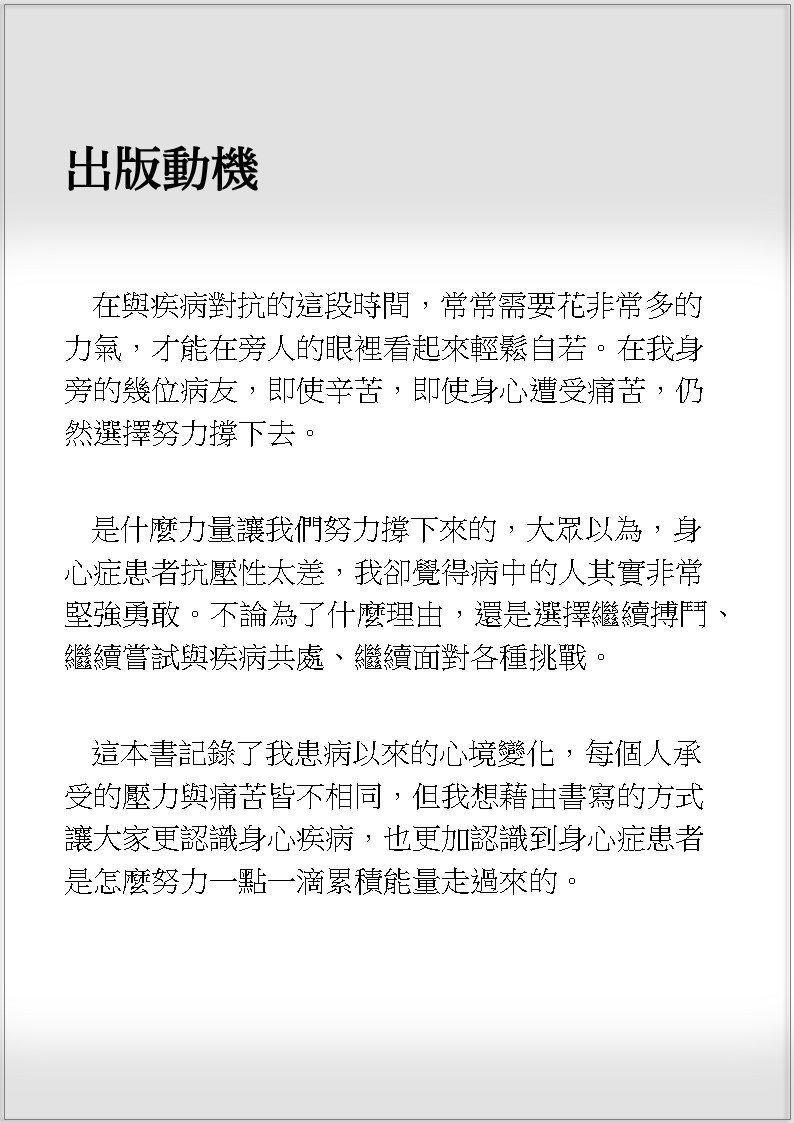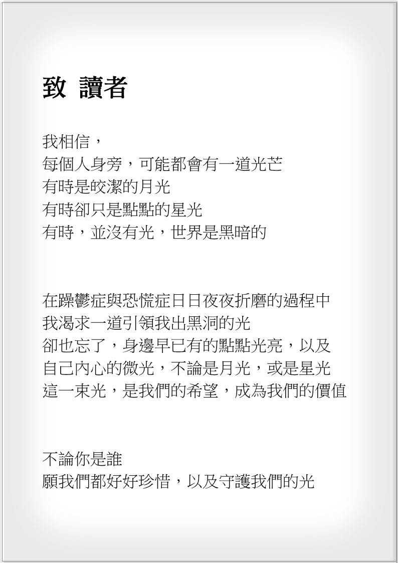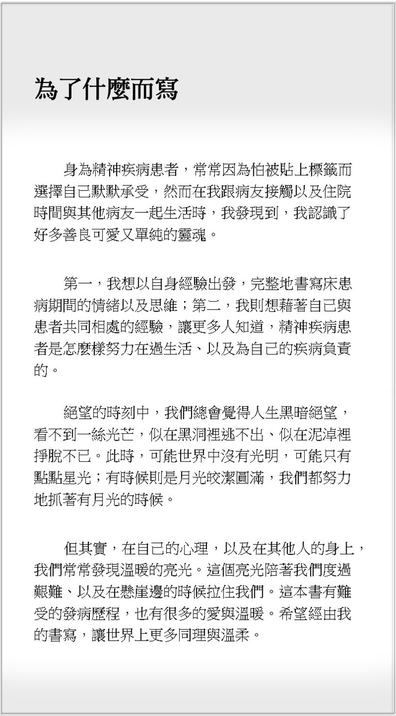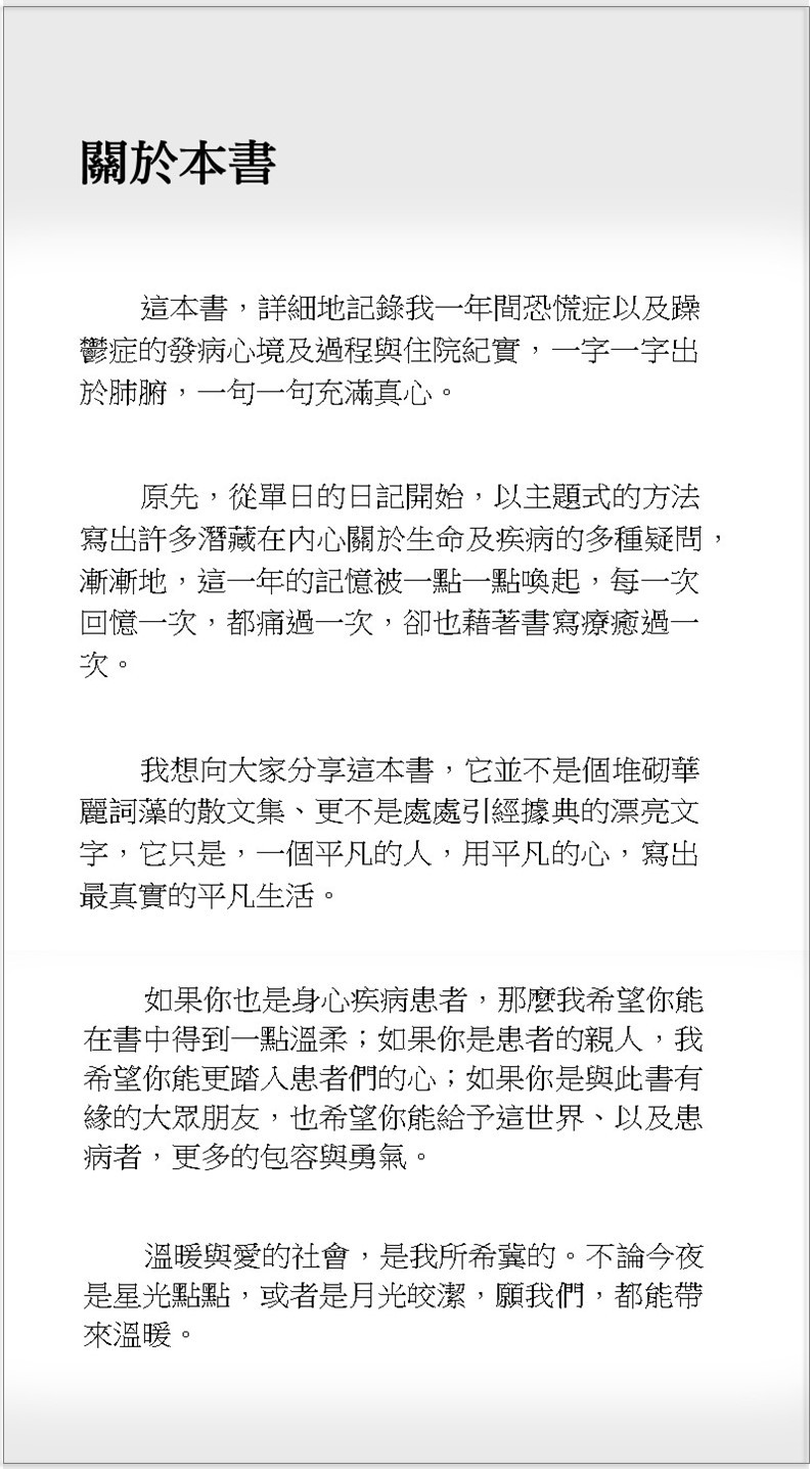 更多試閱內容請參閱粉絲專頁「茱蒂躁鬱日記」
