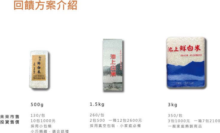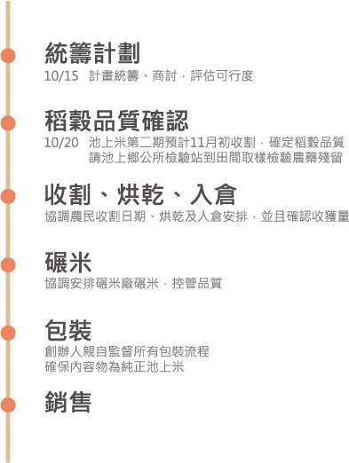 二,新鮮池上米:採用當季稻穀碾制,包裝,零庫存。