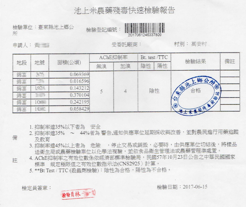 三,堅持稻米品質,經過農藥安全檢驗確保「吃」的安全。