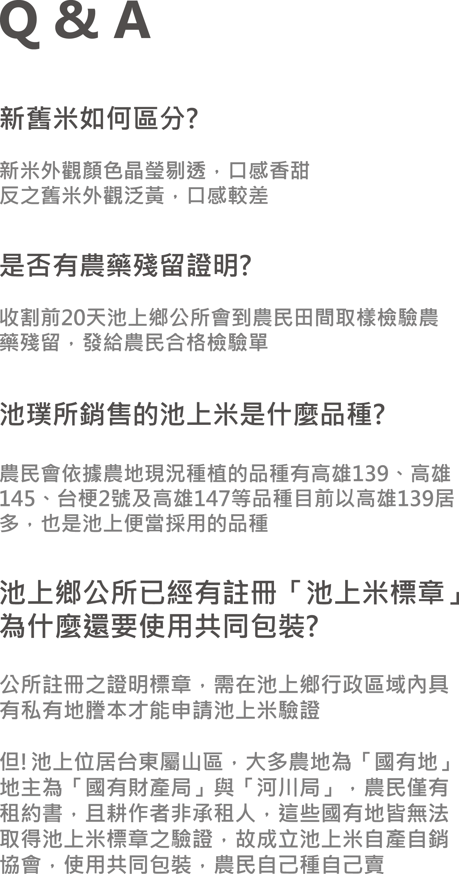米為眾食之本,台東縣池上鄉農產品“池上米”,家家戶戶皆為知曉的“池上米”,稱為台灣米之最都不為過,卻因混米事件消費者無從得知道地正宗池上米該如何選購。