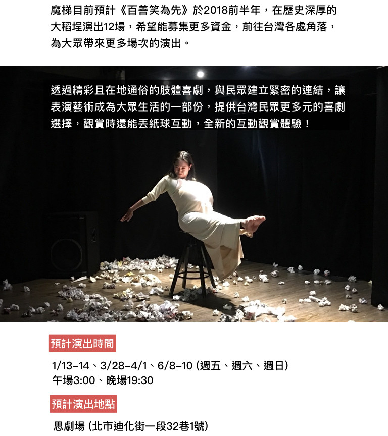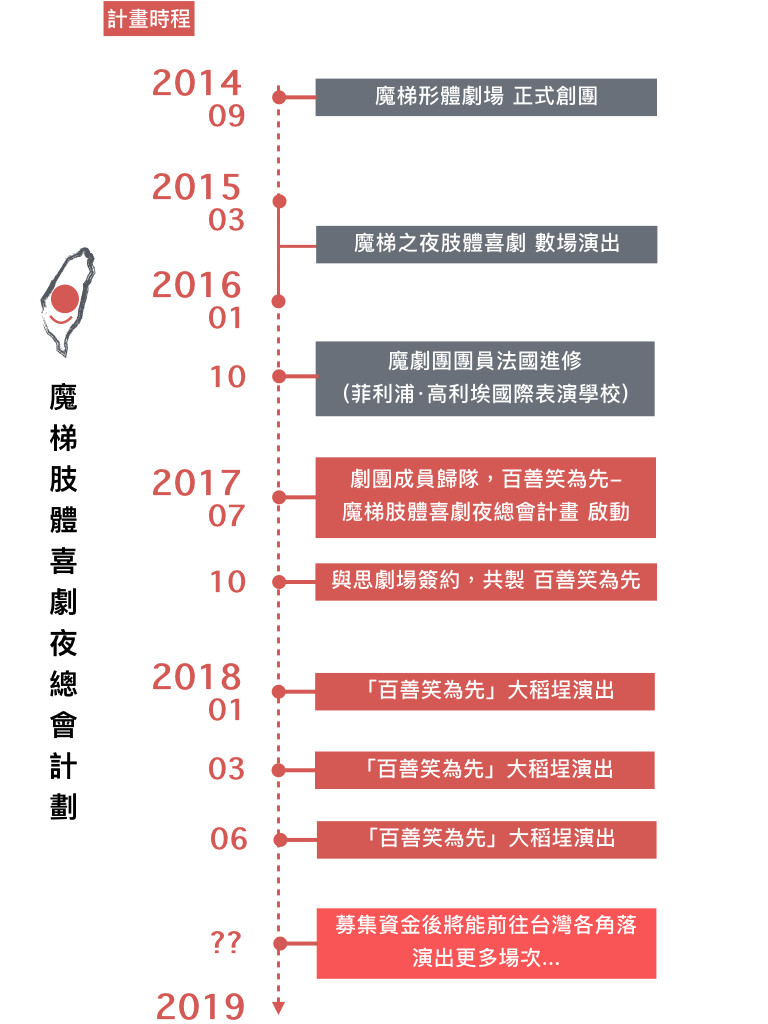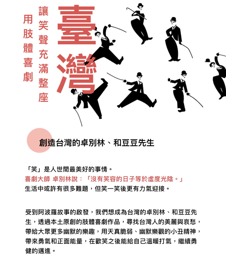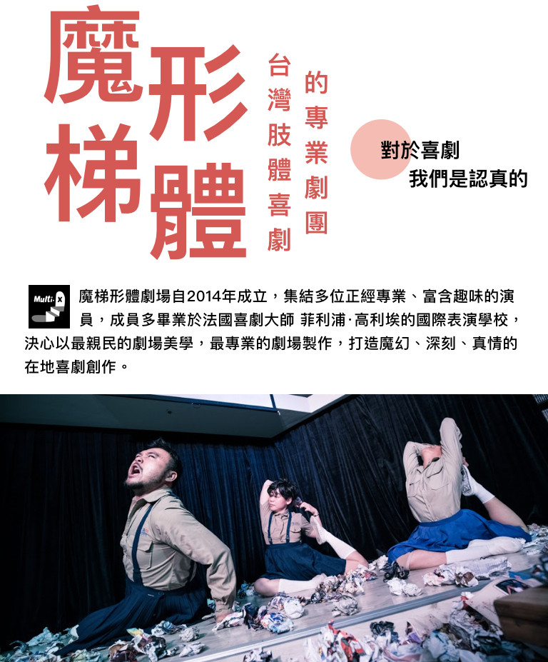 魔梯形體劇場,秉持親民的劇場藝術,要創作屬於台灣人本土的肢體喜劇,成為台灣的卓別林、豆豆先生,並將此藝術深入民間、直達人心。