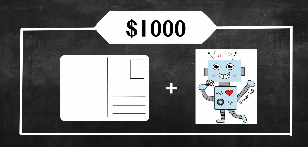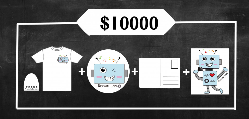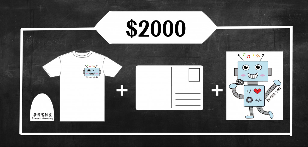 ▲夢想實驗室T恤+夢想實驗室胸章+小朋友手繪明信片+夢想實驗室貼紙