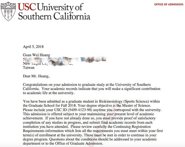 如今,我申請到了南加大-人體肌動學碩士班(Master of Biokinesiology),我不甘心,我付出所有玩樂時間來讀書卻敗給了"錢",我真的好不甘心,我付出了這麼多年的努力卻輸給了"現實",我真的好想去讀南加大。
