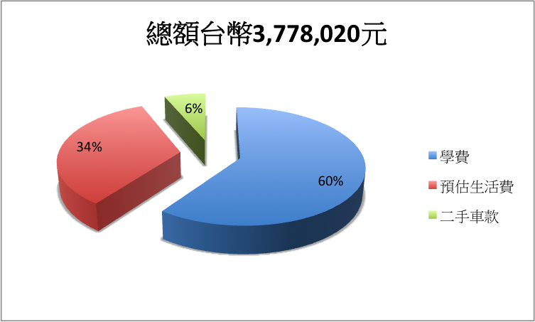 自身及家人已籌措學費美金75,534約台幣2,266,020(60%);