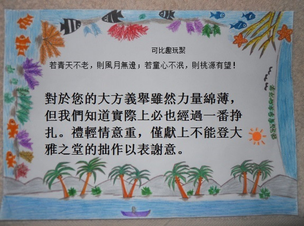 感謝卡1枚+童趣舘盟友--------------------------------------$300/=