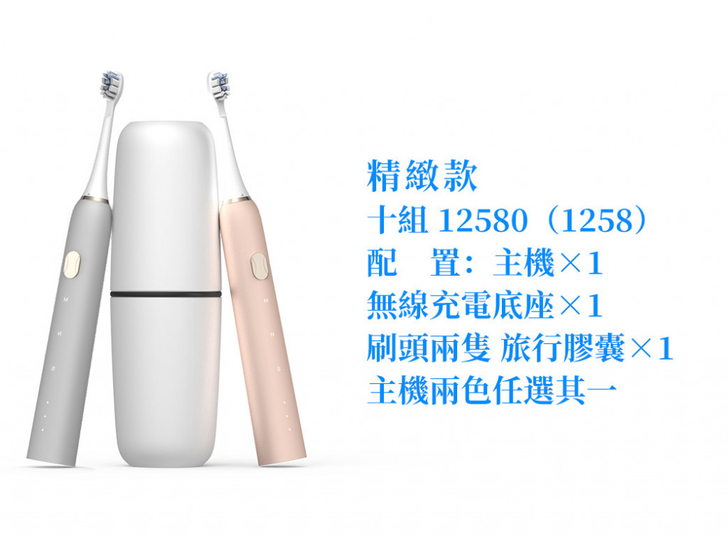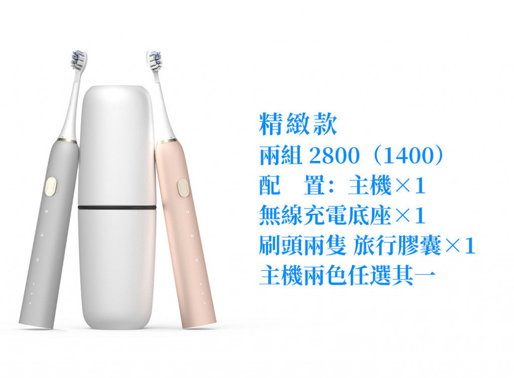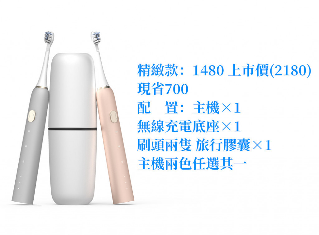 眾籌價 精緻款:1480上市價(2180)現省700 配置:主機*1 無線充電底座*1 刷頭兩隻 旅行膠囊一個 主機兩色任選其一