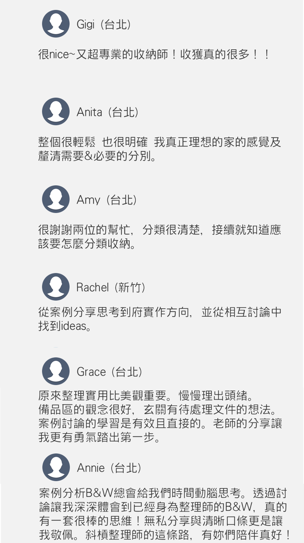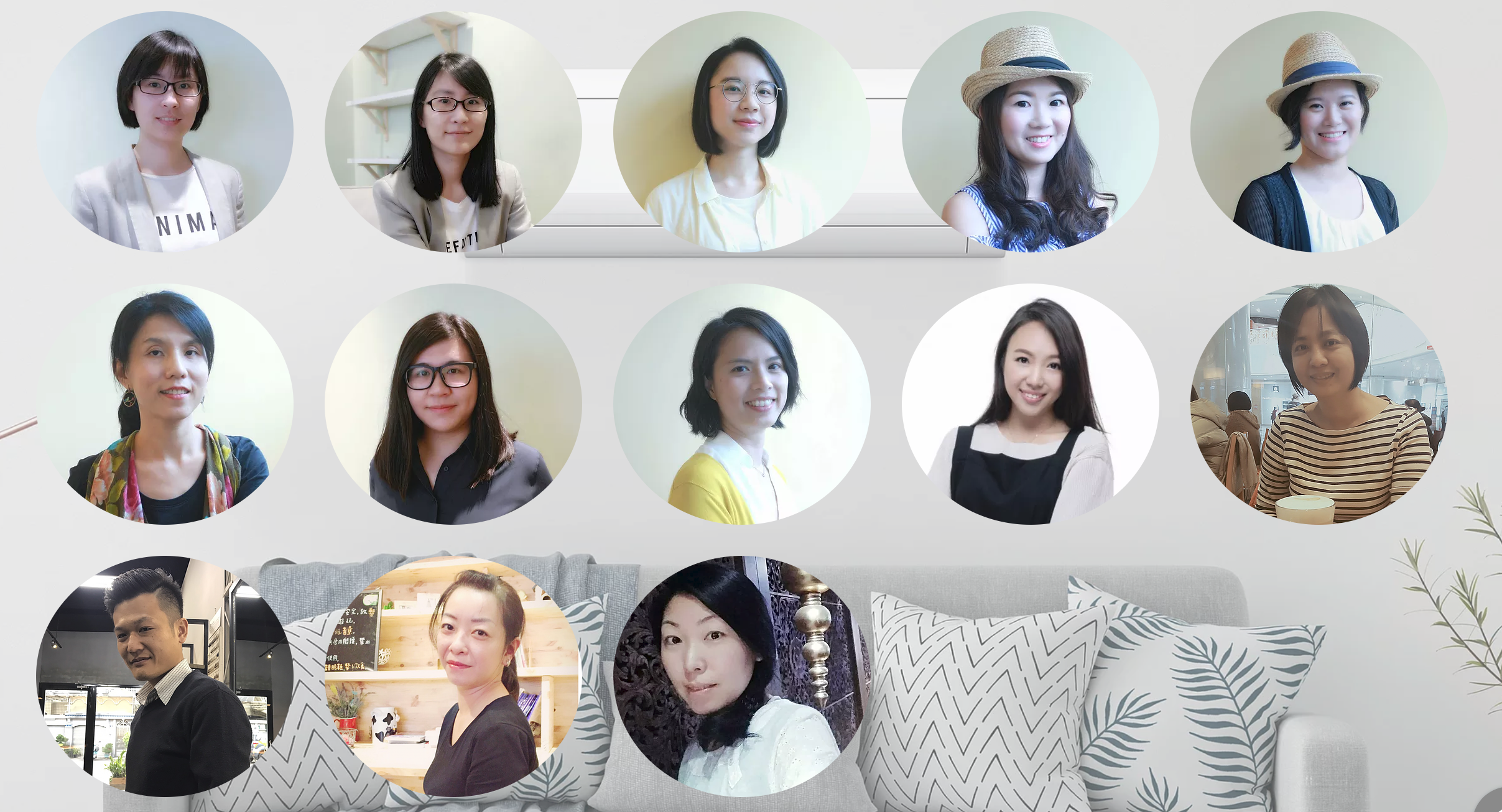 來自台中、新竹、桃園、台北、宜蘭的線上整理諮詢顧問群