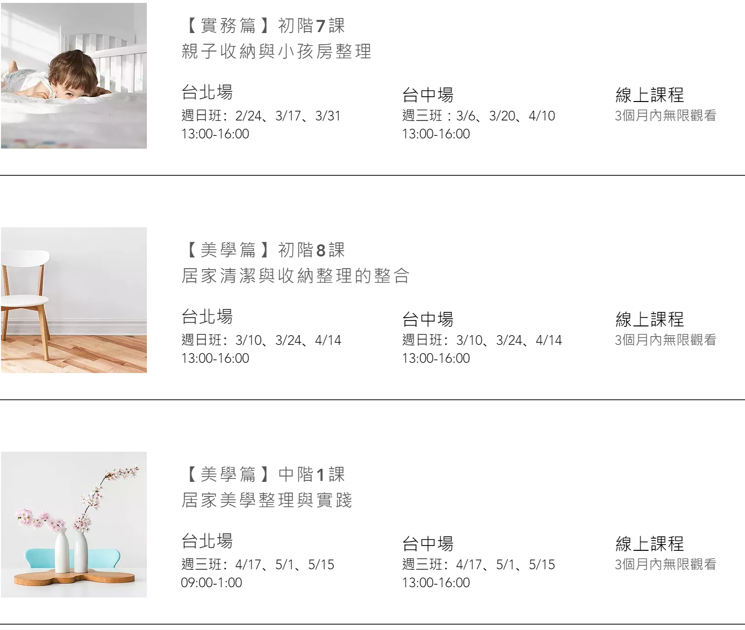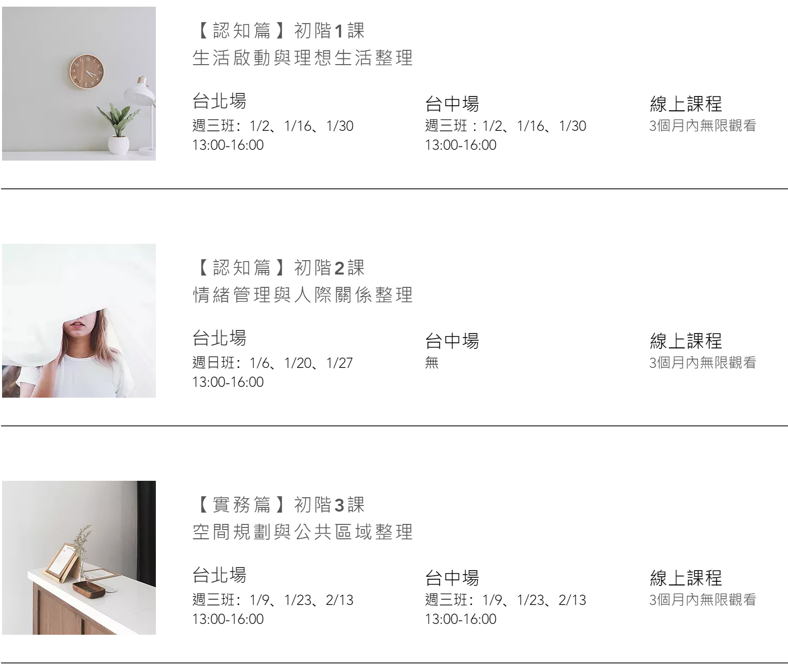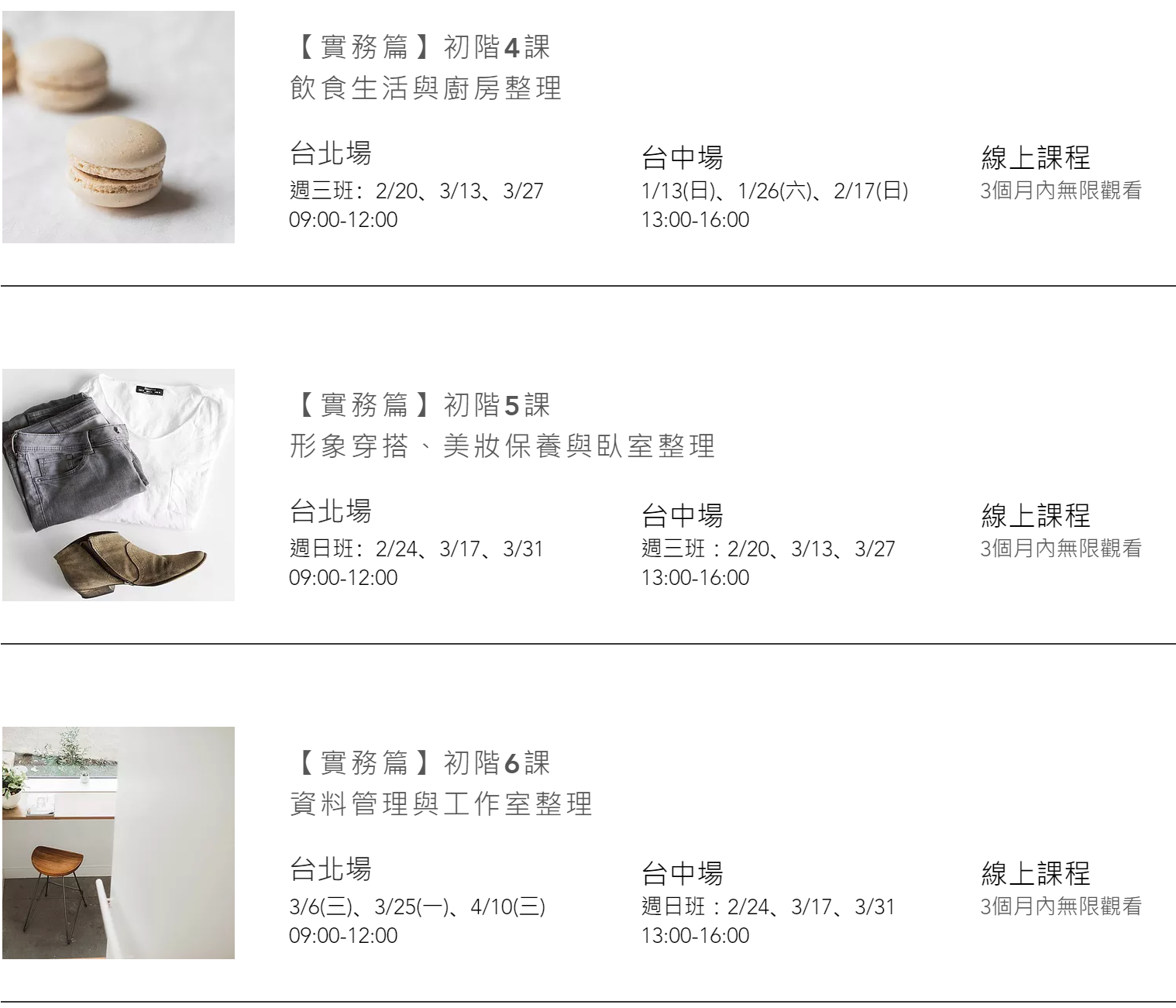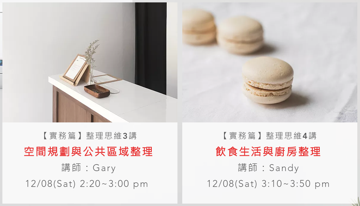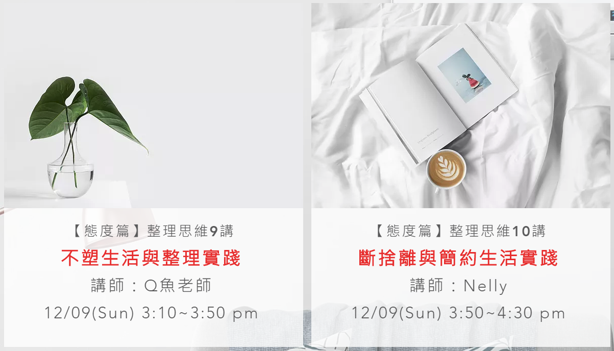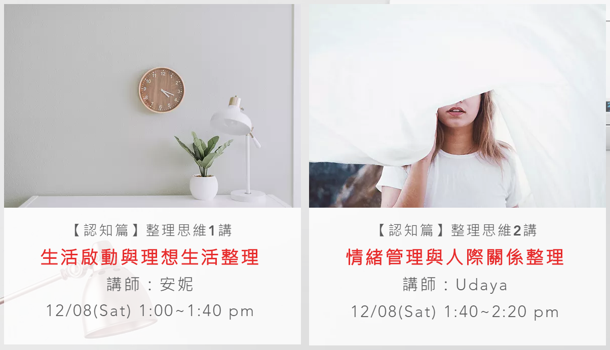 4.整理學院亦提供線上課程,台北場、台中場實體課程及線上課程費用均相同。