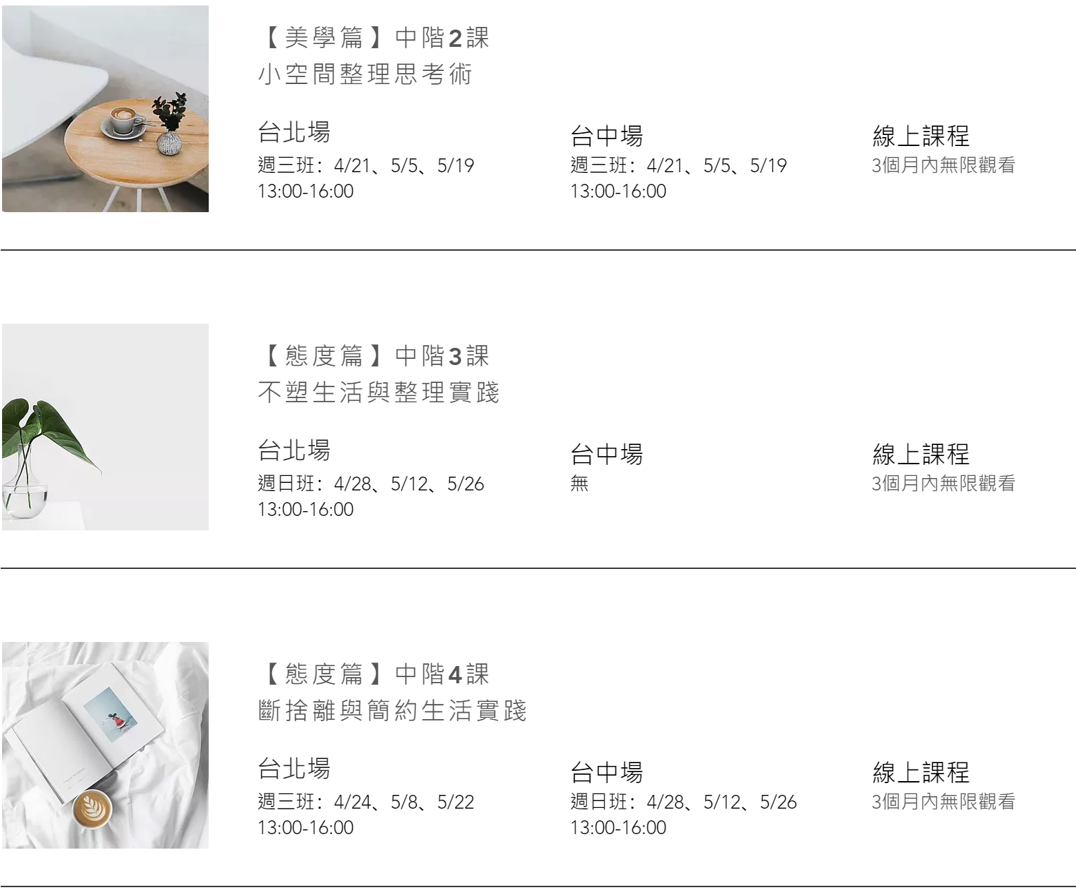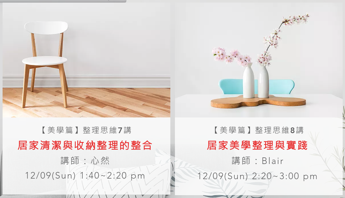 【美學篇】中階第1課:《居家美學整理與實踐》三日工作坊