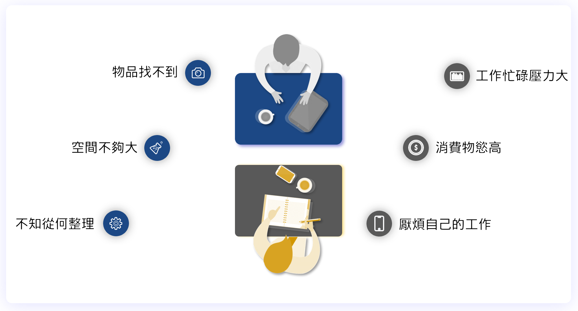 • 整理師透過到府或一對一諮詢方式,