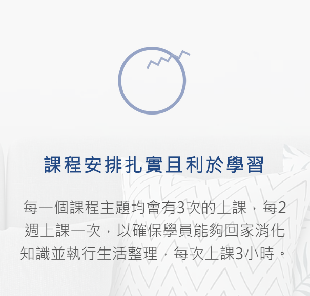 每兩週上課一次,以確保學員能夠回家消化知識並執行生活整理。