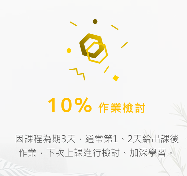 • 喜歡在家線上學習的人亦可選擇線上課程方案,一樣會於實體課程之當日結束2天