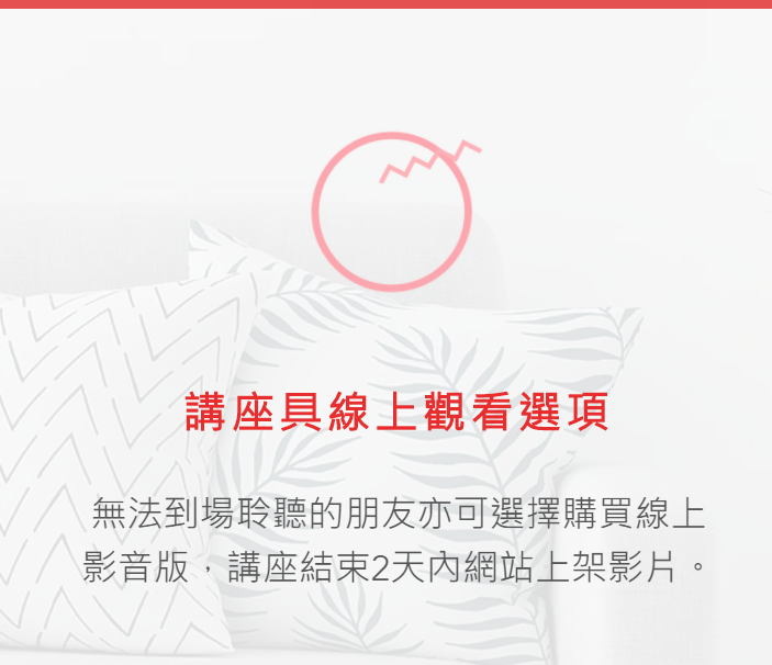 • 無法出席的朋友亦可選擇購買觀看線上影音講座,實體講座之當日結束後2天內上線影音版,觀看時間為講座日之2週內。