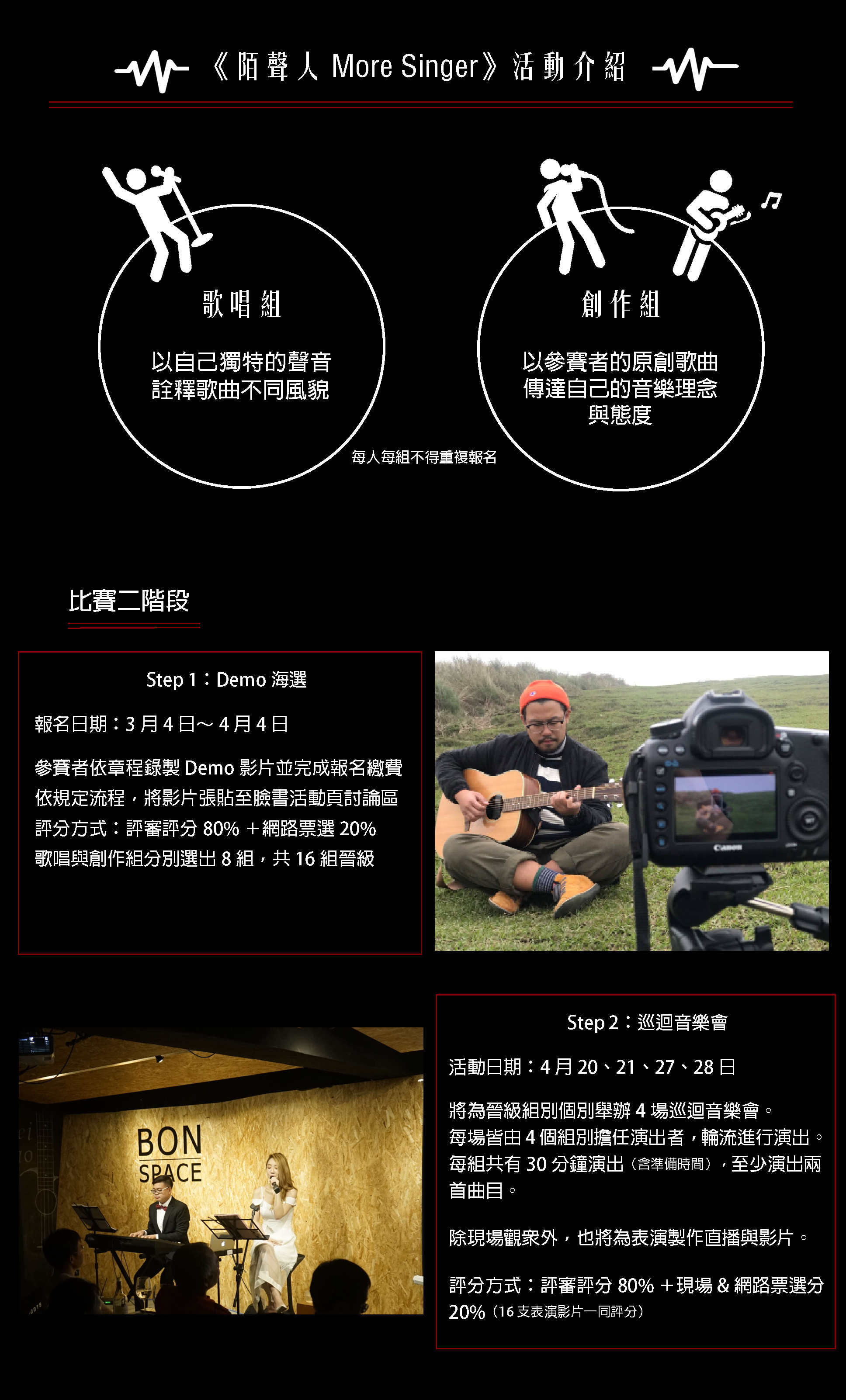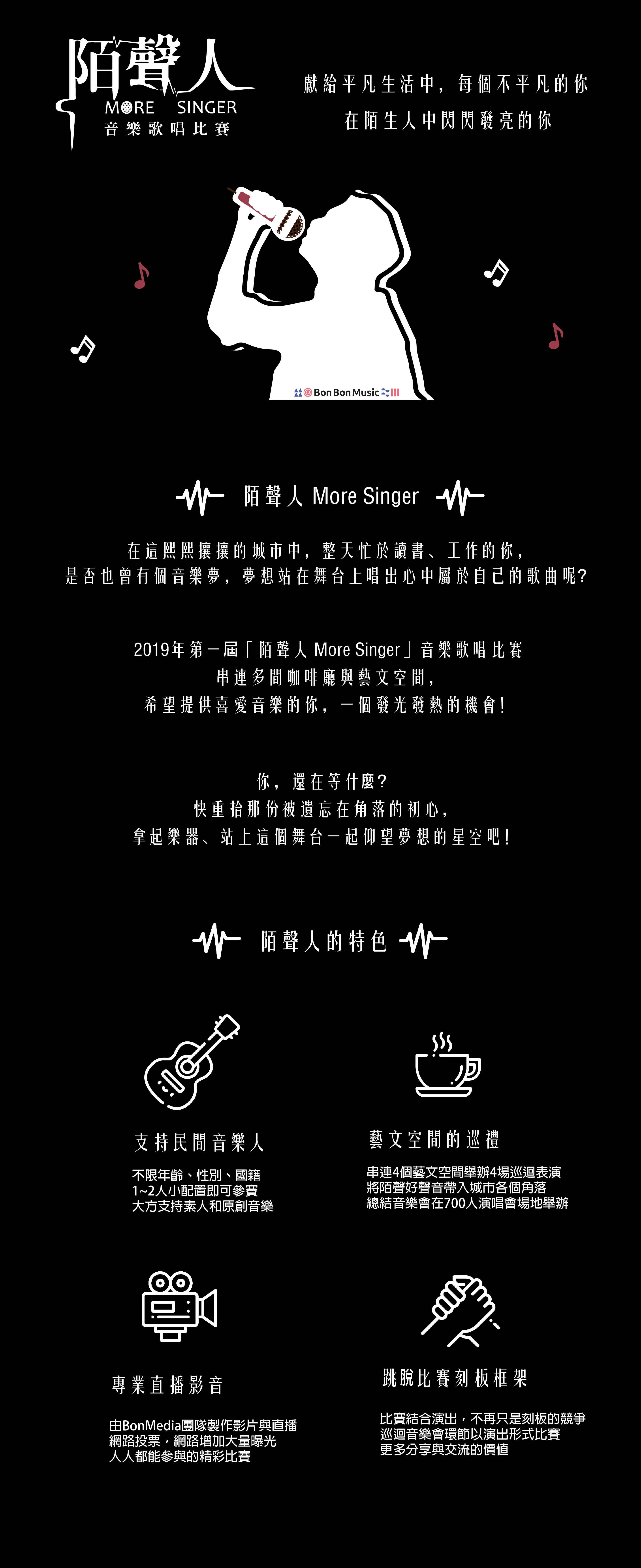 《陌聲人More Singer》,發掘更多熱愛音樂、欲表演卻苦無機會的音樂素人,以小配置、低門檻的演出形式實現站上舞台的夢想,更透