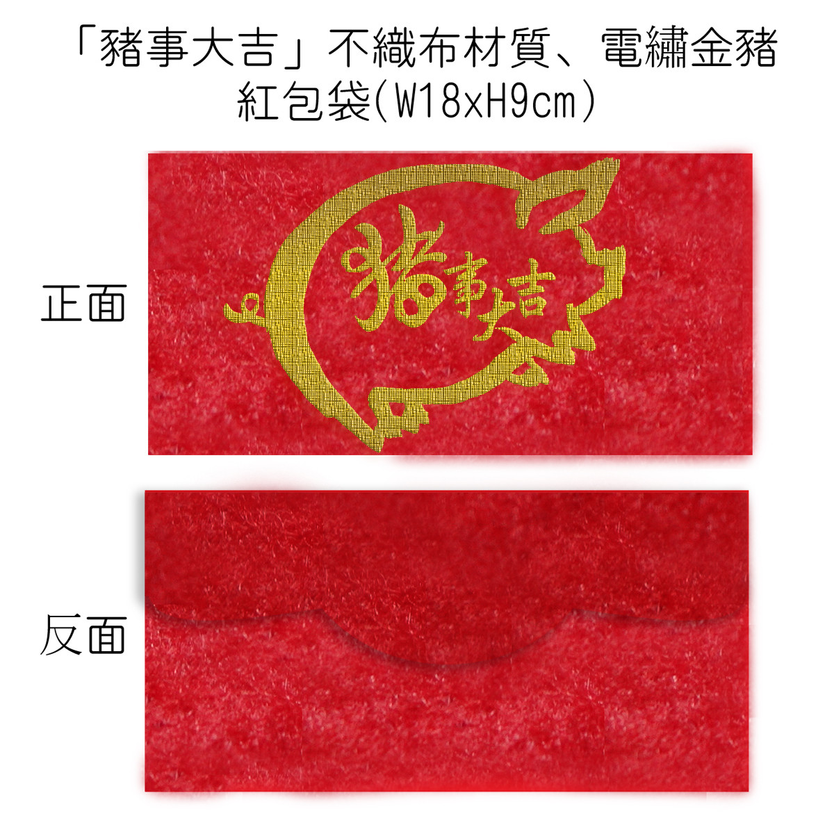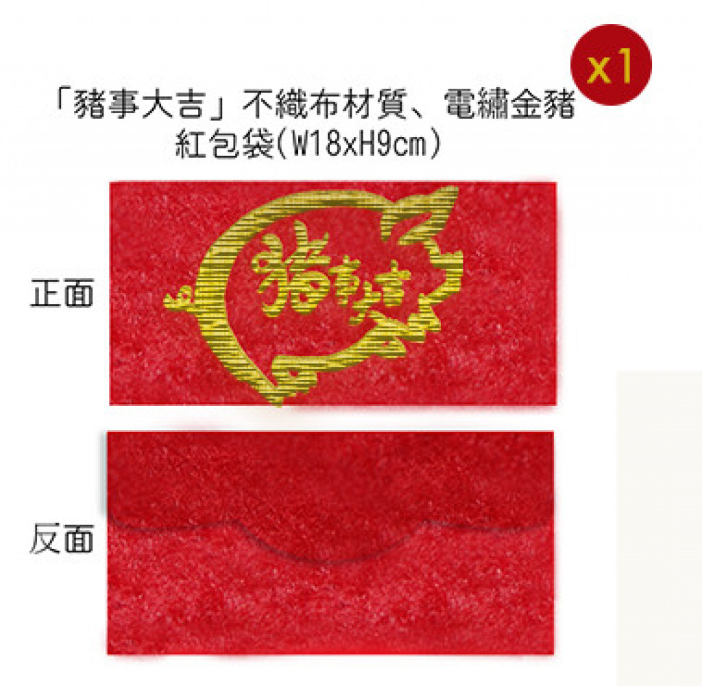 為了感謝大家的不吝支持,我們選用了市面上少見的可重複使用材質—「不織布紅包袋」,並採用2019金豬年的「豬事大吉」電繡製作出立體感,希望能以精心設計的回饋品,表達感恩且讓祝福傳遞下去,也因為製作過程繁瑣,希望支持的朋友能耐心等候,再次感謝您的幫助!