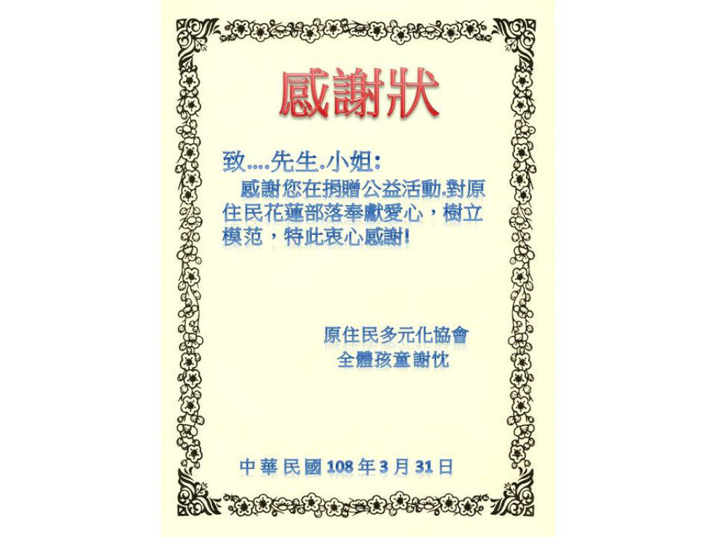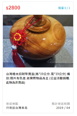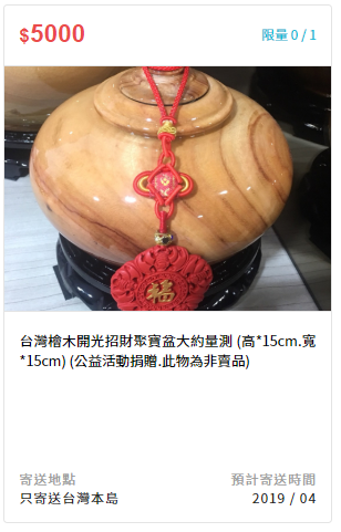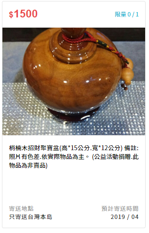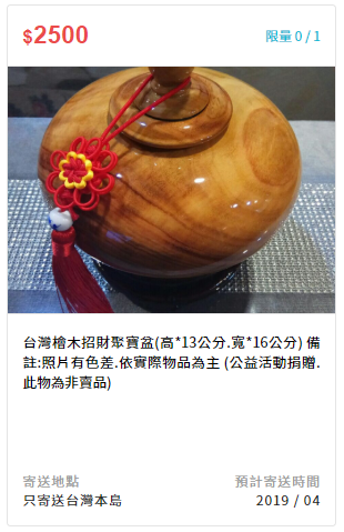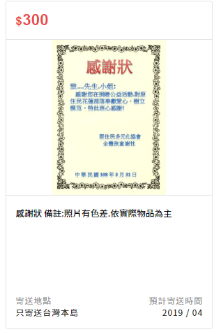 備註:公益活動捐贈,此物為非賣品,可開立一般收據。