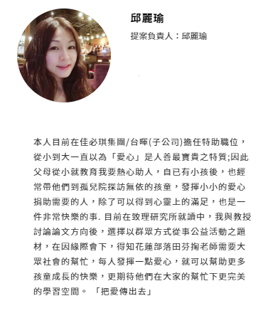 例如1.募資金額1000元可以提供10個小孩下課後講義.教材等費用