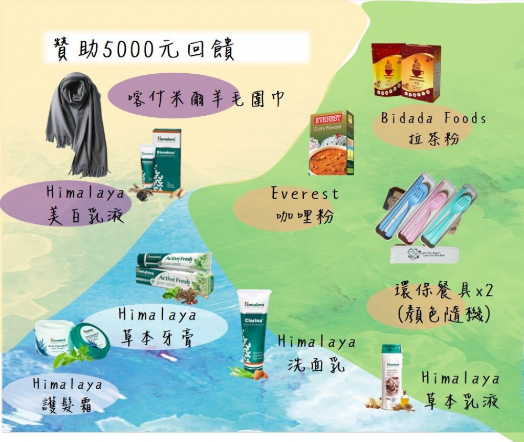 喀什米爾羊毛圍巾+美白乳液+拉茶粉+咖哩粉+環保餐具組X2+草本乳液+洗面乳+草本牙膏+護髮霜