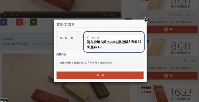 請在「我只想單純贊助,不須回饋,謝謝您。」中付款(剛好就是100元喔!)