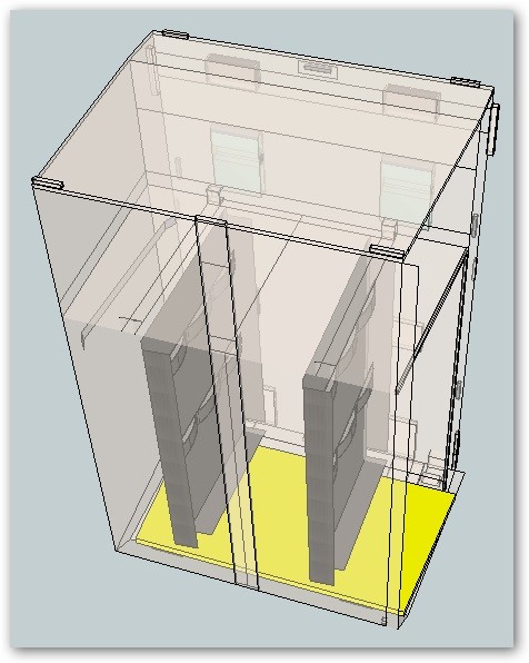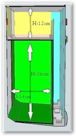 包含三個隔間艙  主艙可打通(綠色與黃色區域)