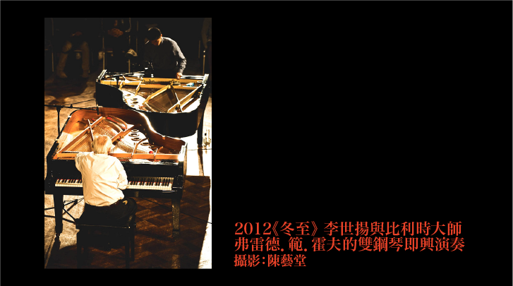 即興鋼琴家李世揚過去十年經常舉行或受邀國內外演出,作為鋼琴家的他經常與舞團合作,產出包含獲得台新藝術獎的《兩男關係》與獲得美國麥考倫劇院編舞首獎的《時空抽屜》。十年來他也邀請近百位國外藝術家到台灣演出。
