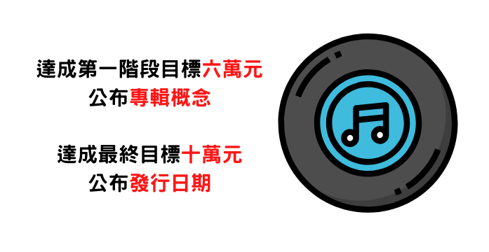 專輯製作費用總計為20萬5千元,此次募資目標為10萬元,剩餘費用將自行籌備。完成第一階段6萬元目標將公布專輯概念,完成10萬元目標將正式啟動製作專輯工作期程,預計明年春天發行。