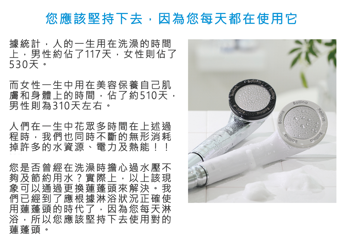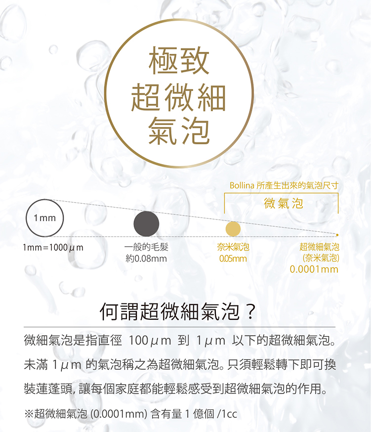 Bollina Wide超微細奈米泡泡蓮蓬頭具有W.H.M.E四大特點: