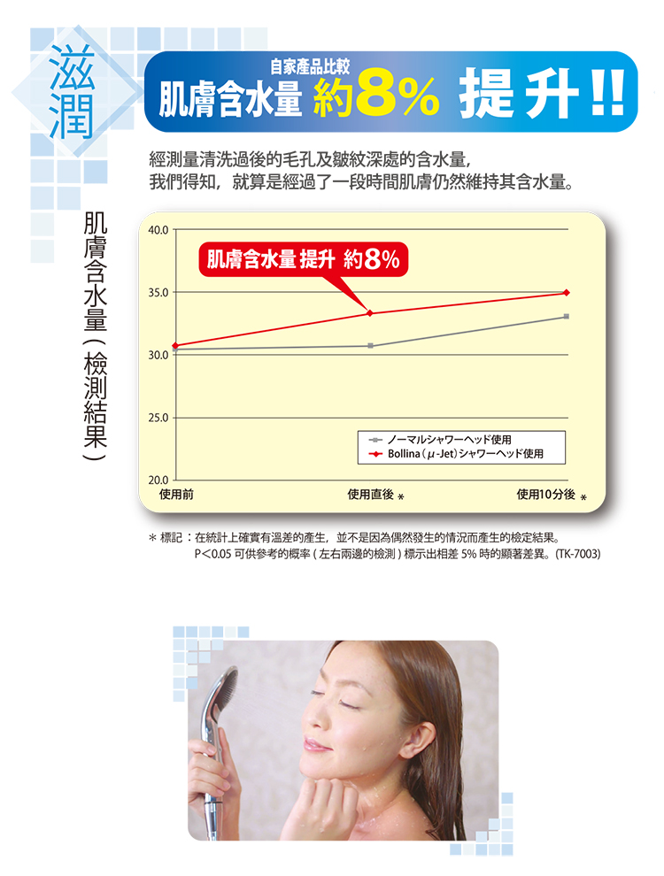 我們花了三年多的時間洽談,現今引進日本田中金屬製造株式會社獨家開發出來的Bollina Wide超微細奈米泡泡蓮蓬頭,100%日本專利技術製造,原裝進口。
