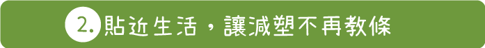 透過生活中容易見到塑膠物品與使用場景,讓孩子充滿好奇心和增強觀察力。透過「塑膠是什麼?」、「為什麼?」、「怎麼做」的引導方式,讓生活減塑也能是有趣的遊戲,而不再只是教條和規矩。