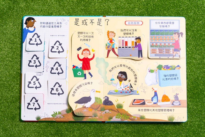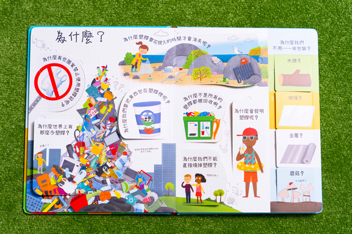 《關於塑膠你想做什麼?》這是一本由英國權威兒童出版集團Usborne出版的生活減塑翻翻書,專為三歲以上兒童量身打造的知識性書籍,透過60個翻翻頁,以簡單的畫面,有趣的互動,介紹我們生活中的塑膠小知識以及塑膠再利用的生活小點子。讓生活減塑不再只是教條、規矩,而是能真正落實在我們與孩子的生活之中。