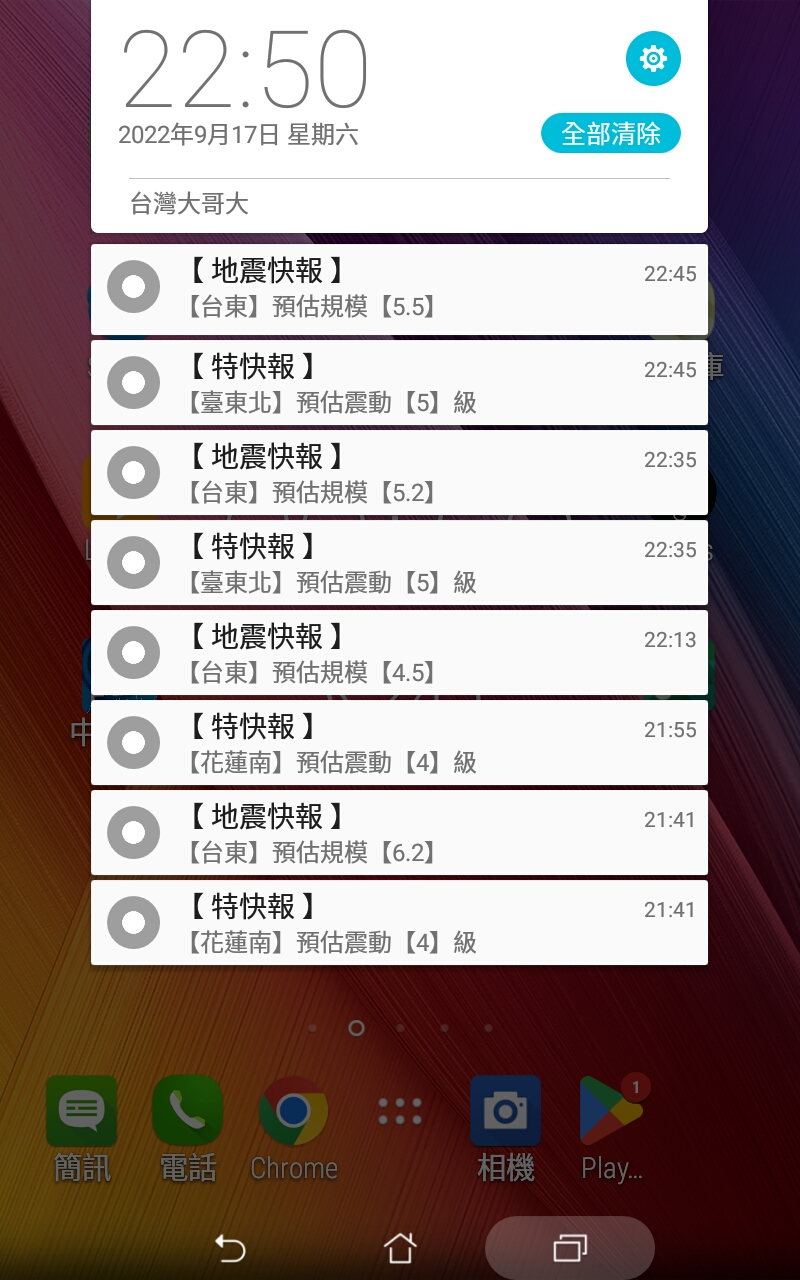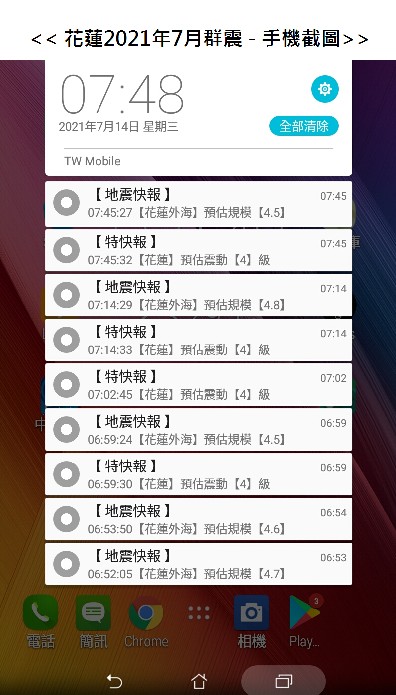 3/23【台東長濱】空知地震錄影 - iPhone推播---【特快報】快10秒,快10秒,快10秒