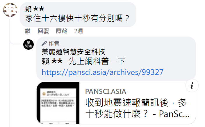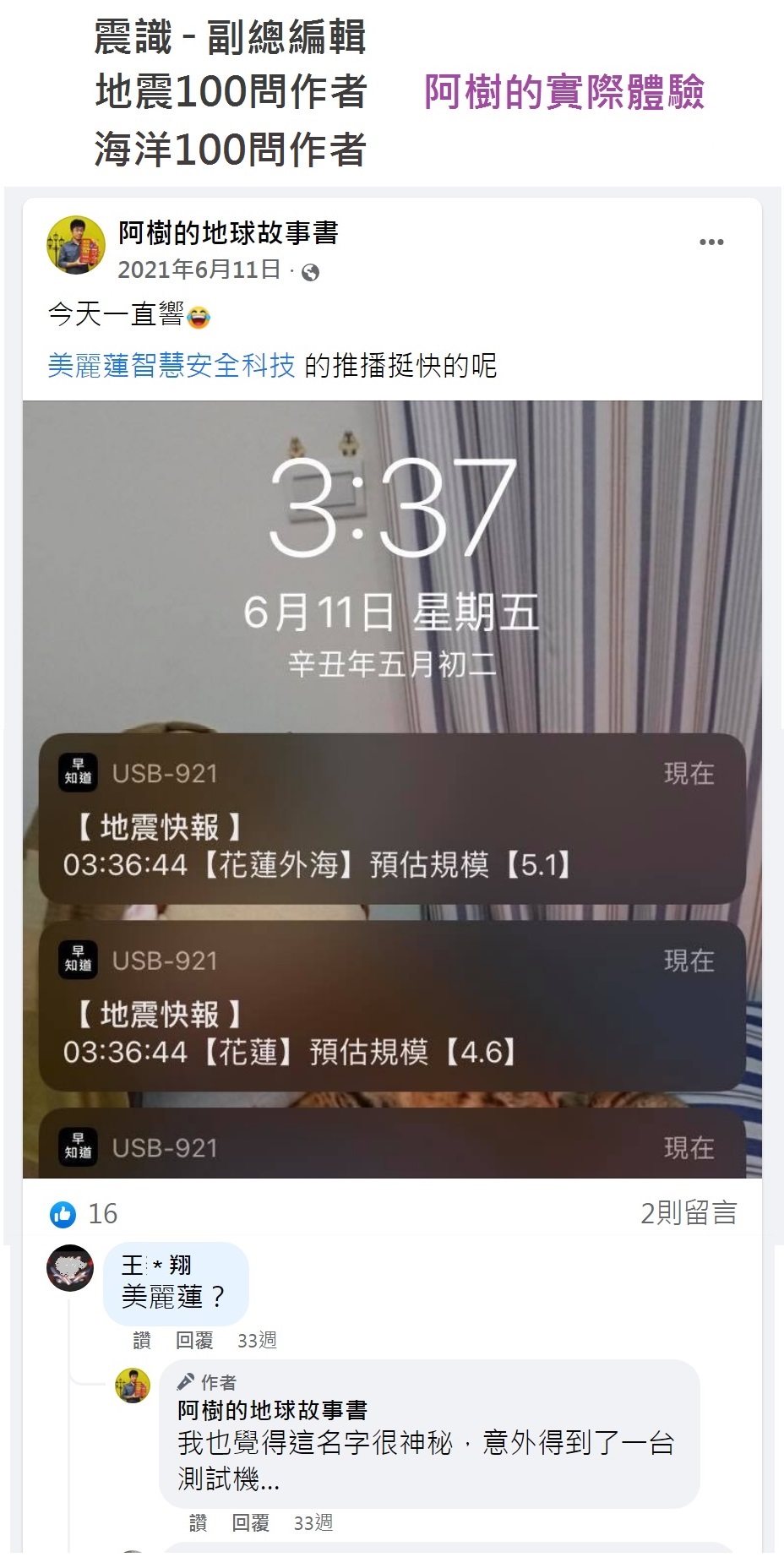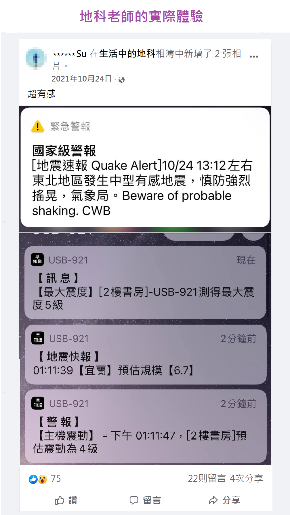 【多個保險】萬一手機訊號不好, 收不到地震通知, 有另一管道分散風險