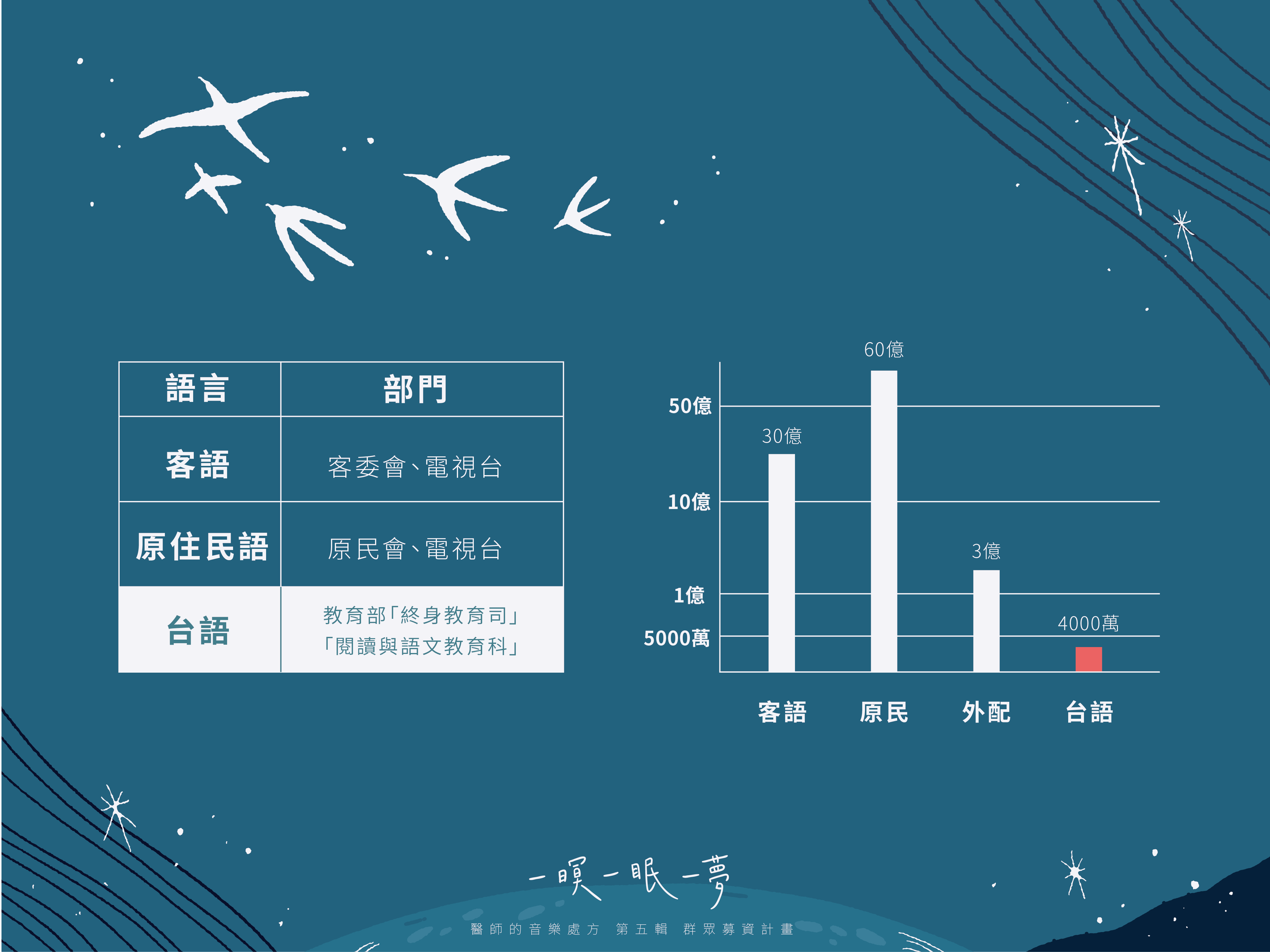 我們希望能夠邀請大家,一同為了台灣的本土文化努力。只要你願意,儘管是一杯咖啡的金額,也將成為促成這張專輯完成的推手,為了我們熱愛的本土文化努力——讓閩南語的溫暖與俏皮四散在台灣的每一個角落——這是再也理想不過的願景了!