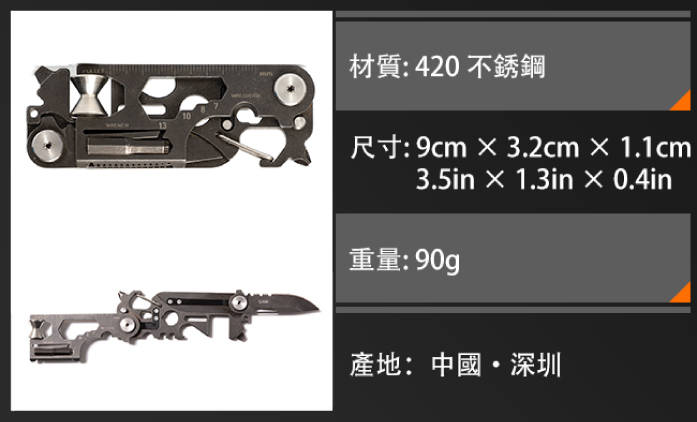 PockeTool採用高品質420不銹鋼和石磨拋光,具有極強的防銹和耐腐蝕能力,可以隱藏輕微的刮痕。它堅固、可靠、耐用、輕便,並能黏在任何磁性表面上。光滑的表面設計,鈍角邊緣,防止割傷,保護你在使用時不受傷。讓其使用舒適,並提供了優秀的持有能力與優異的性能。並且設計小巧可以隨時掛在牛仔褲/登山包/口袋/錢包等。