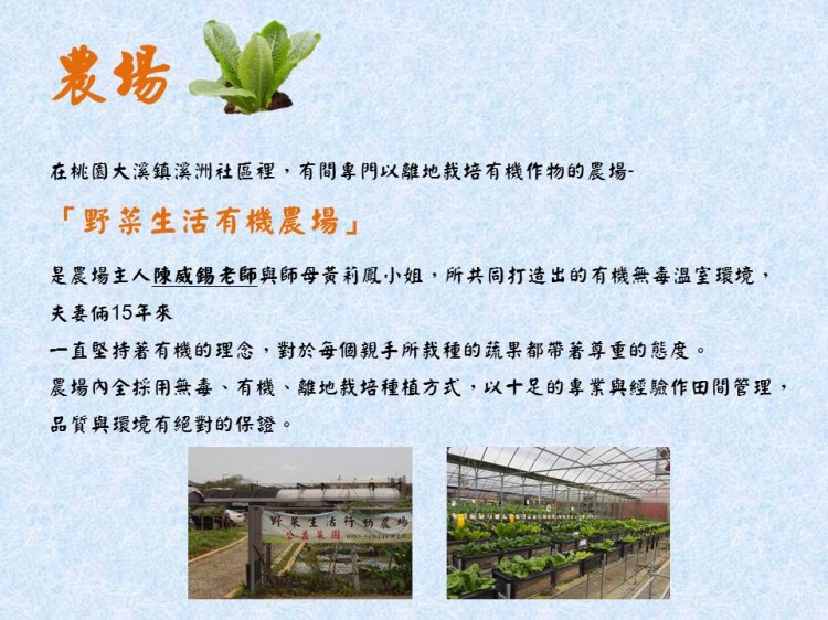 ☼ 野菜生活有機農場 FB粉絲頁 │ 部落格 ☼