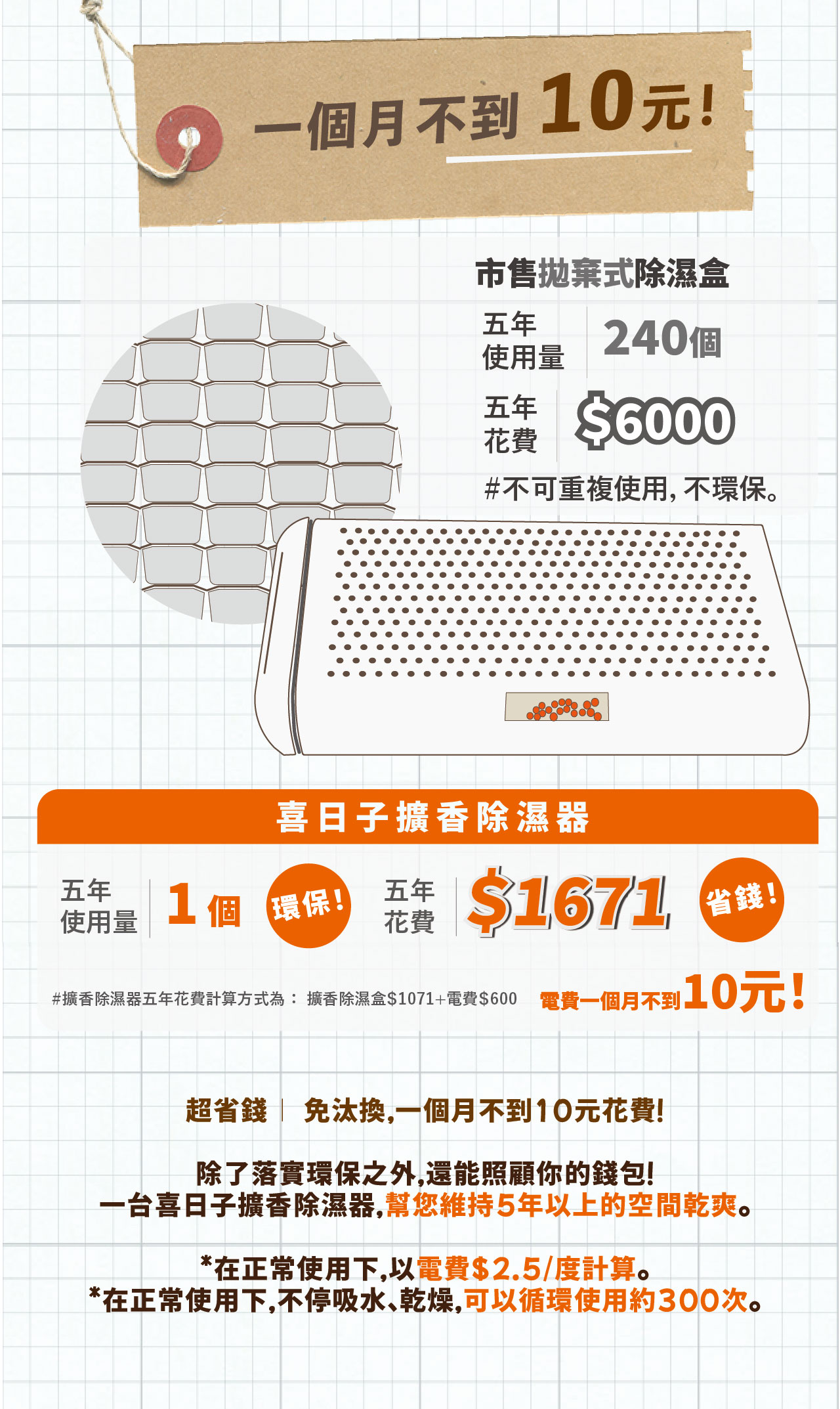 • 高CP值,平均每個月不到$10,即可解決生活困擾!(*以每個禮拜加熱一次為計算*)