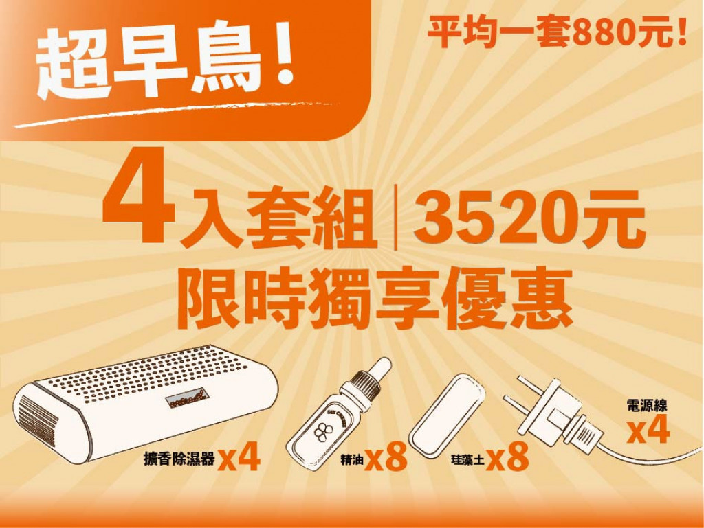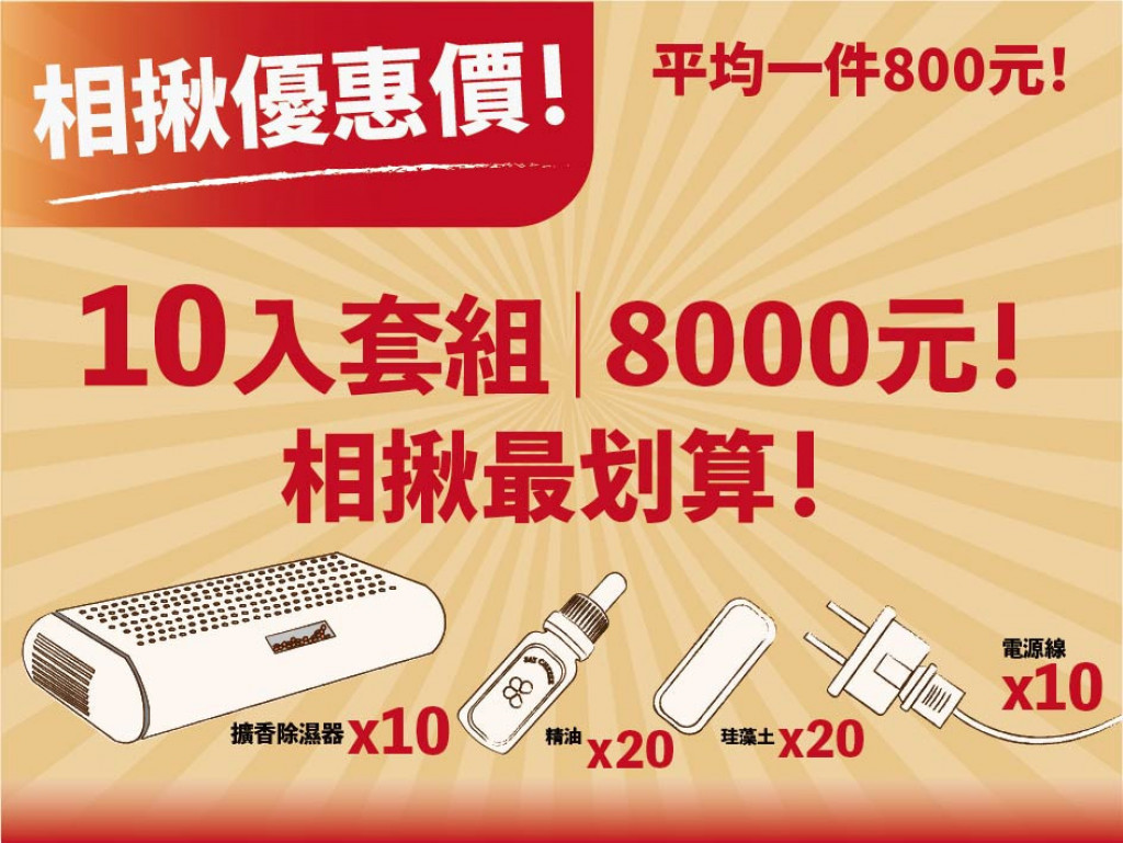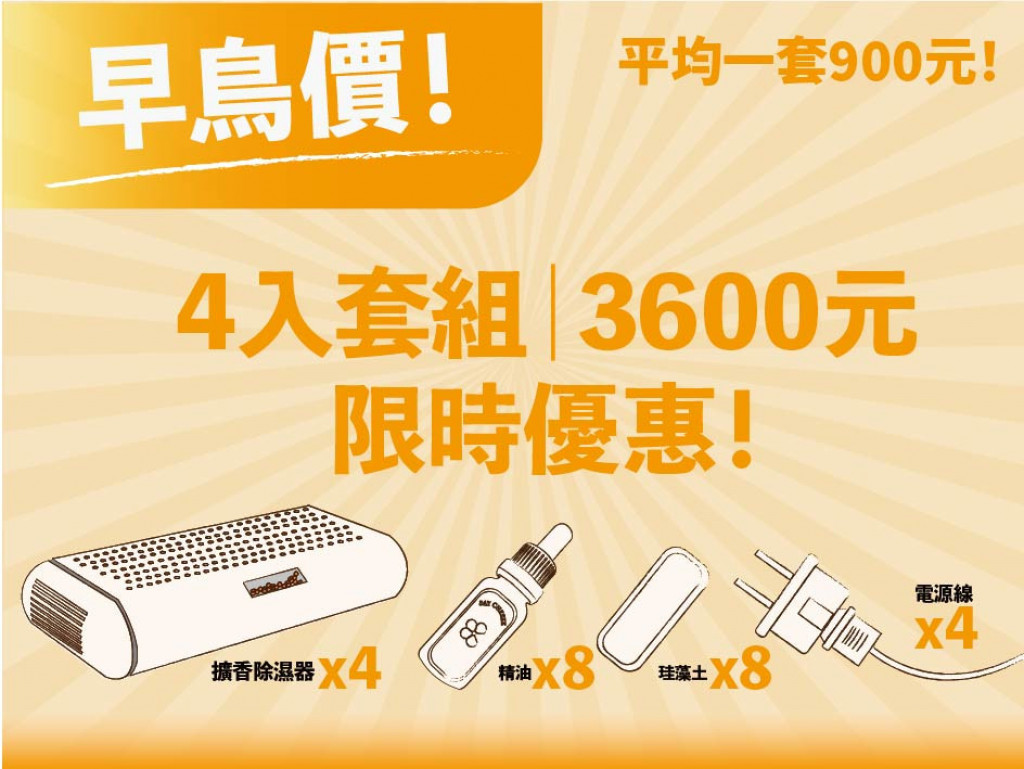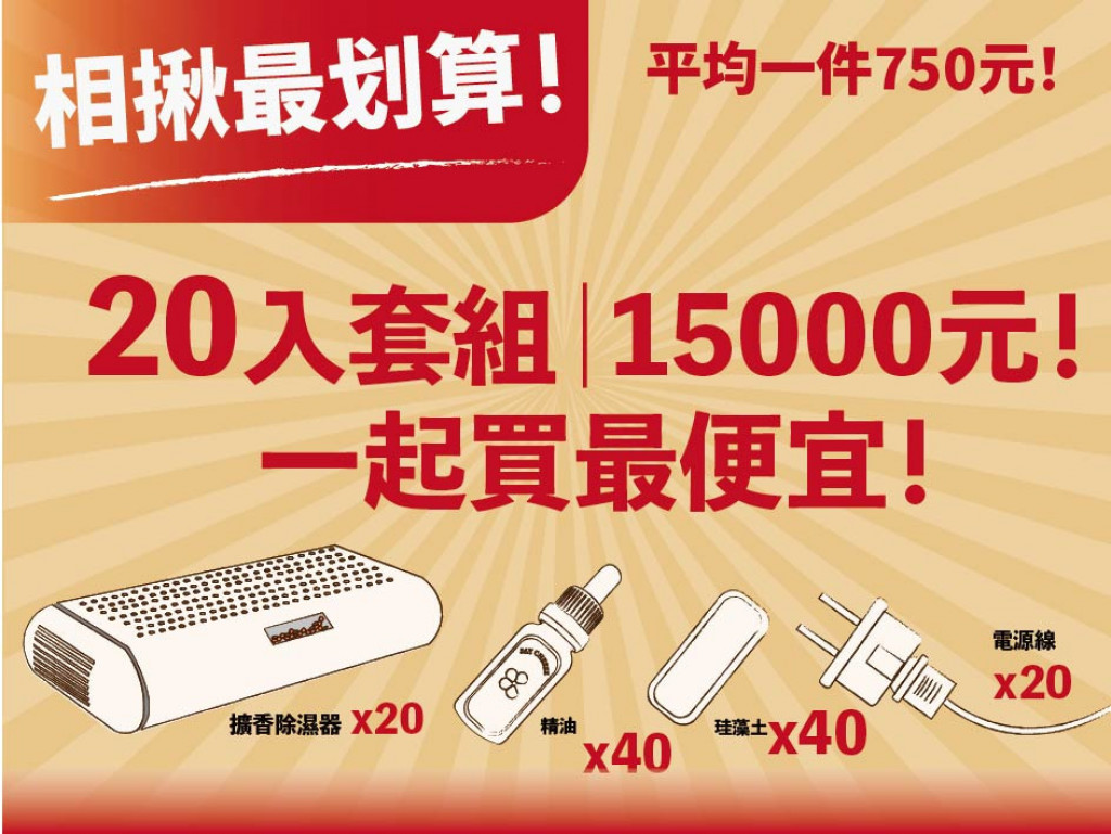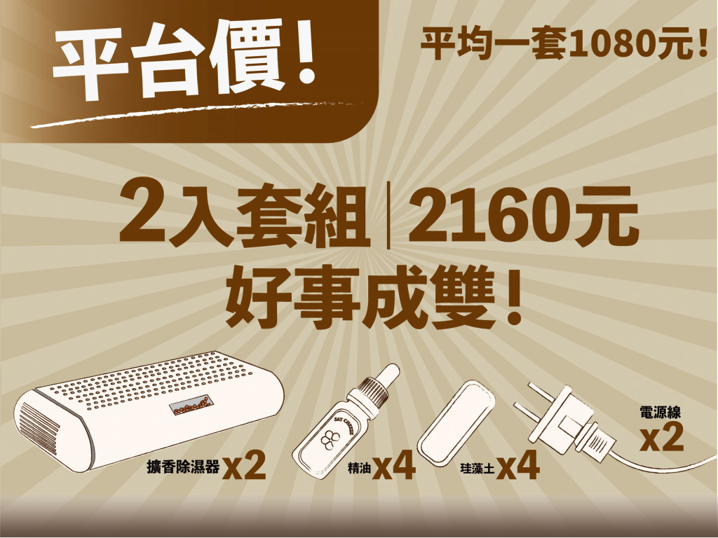 台灣多雨水氣重,衣櫥裡潮濕,衣物容易發霉,產生霉味,而市售除濕袋除濕盒,滿水後須倒水,操作麻煩,且有破袋、液體汙染損壞物品疑慮,加上市售常見除濕劑與芳香袋,皆屬消耗品,累積開銷之外也不環保。因此本團隊設計出一款結合"除濕"與"擴香"功能的創新產品。