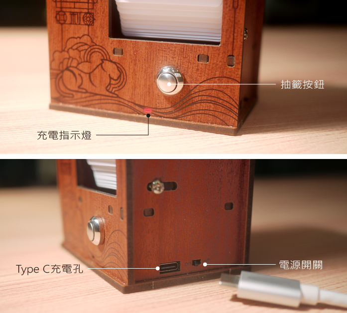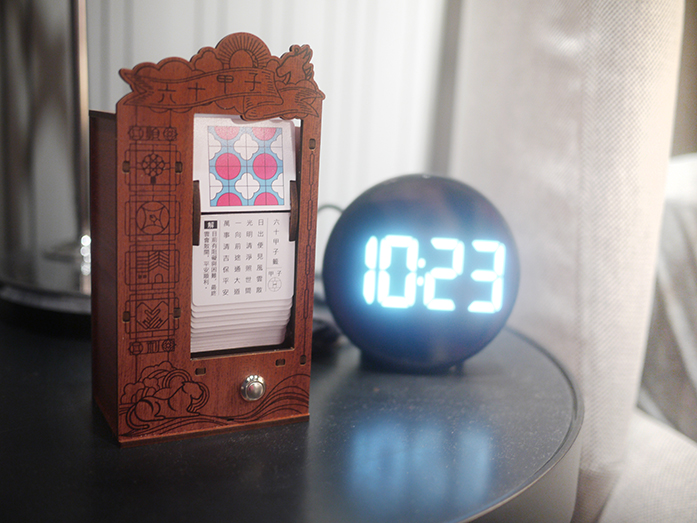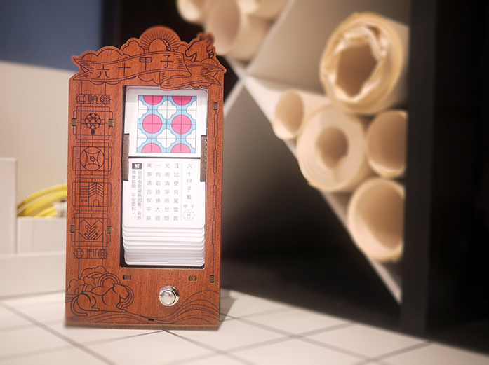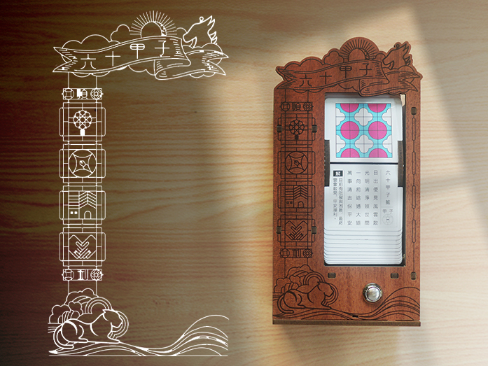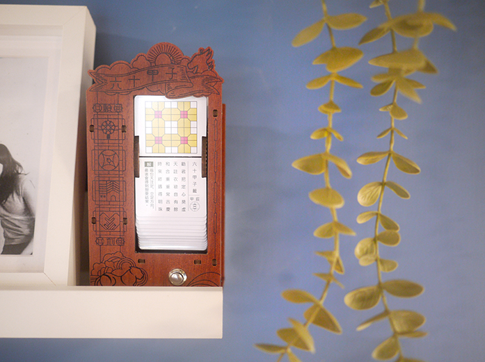 當遇到猶豫或困境時,會求支籤希望神明指引一條明路。翻頁式六十甲子抽籤機有別過往籤筒型式,以翻頁鐘翻頁的型態選籤。尺寸小巧,可擺在書桌、玄關、床頭,隨時解惑排憂。