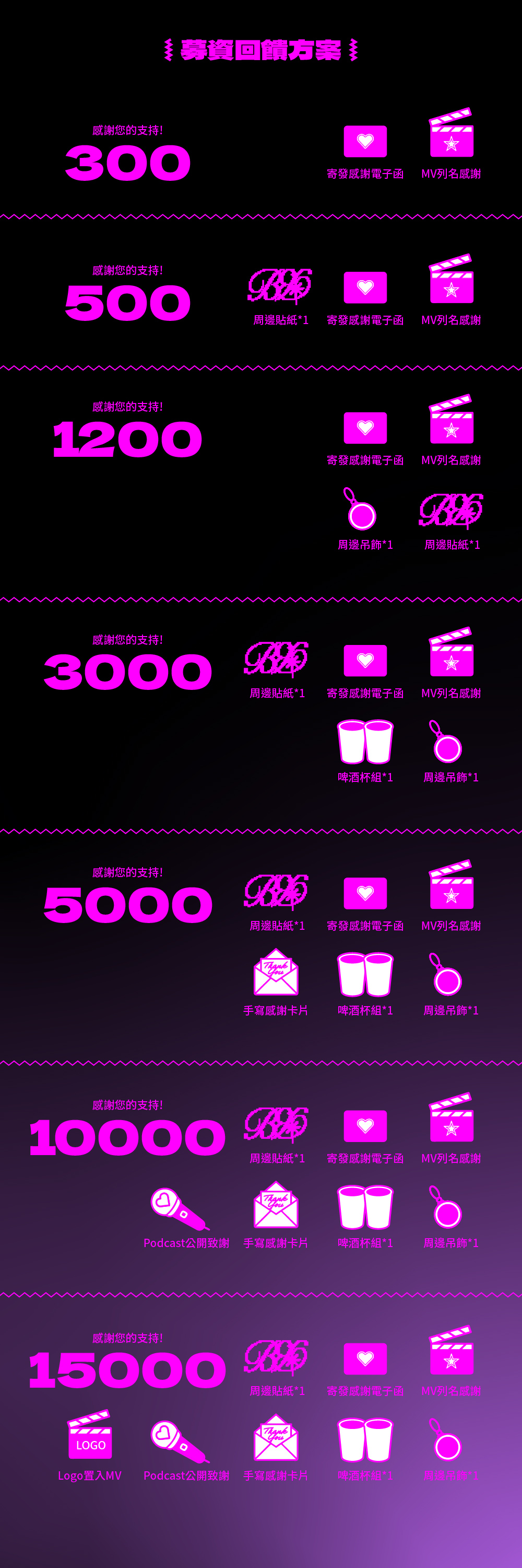 若不希望本名出現在MV感謝名單,請於付款時在「備註」填寫綽號。但請注意,收件資料還是要填寫本名以確保順利送達回饋物品!